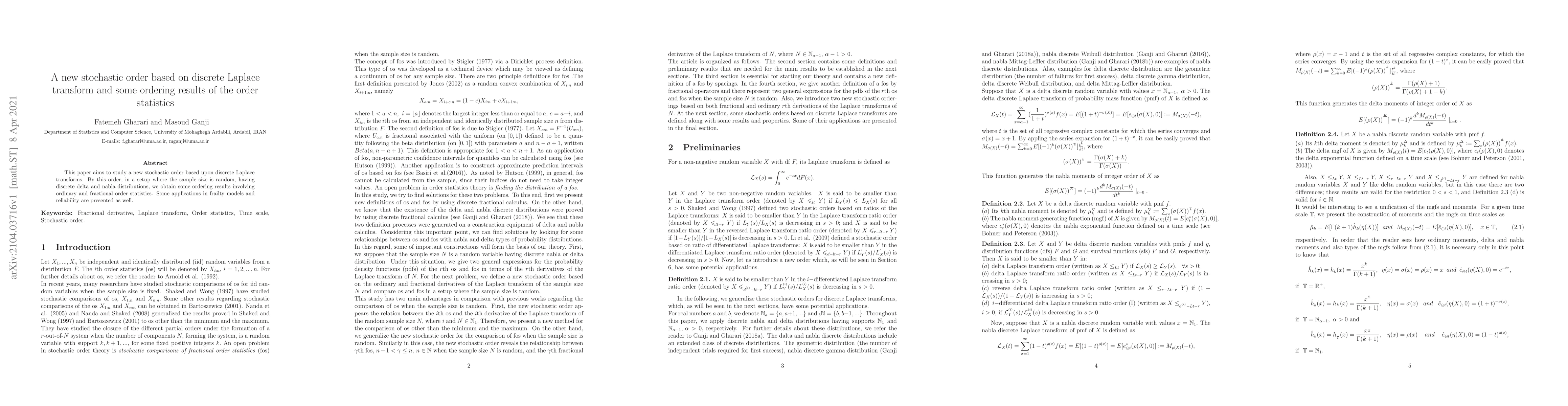 Researchers introduce a new stochastic order based on discrete Laplace transforms, which offers insights into ordinary and fractional order statistics in random sample settings. The study has implications for frailty models and reliability applications.