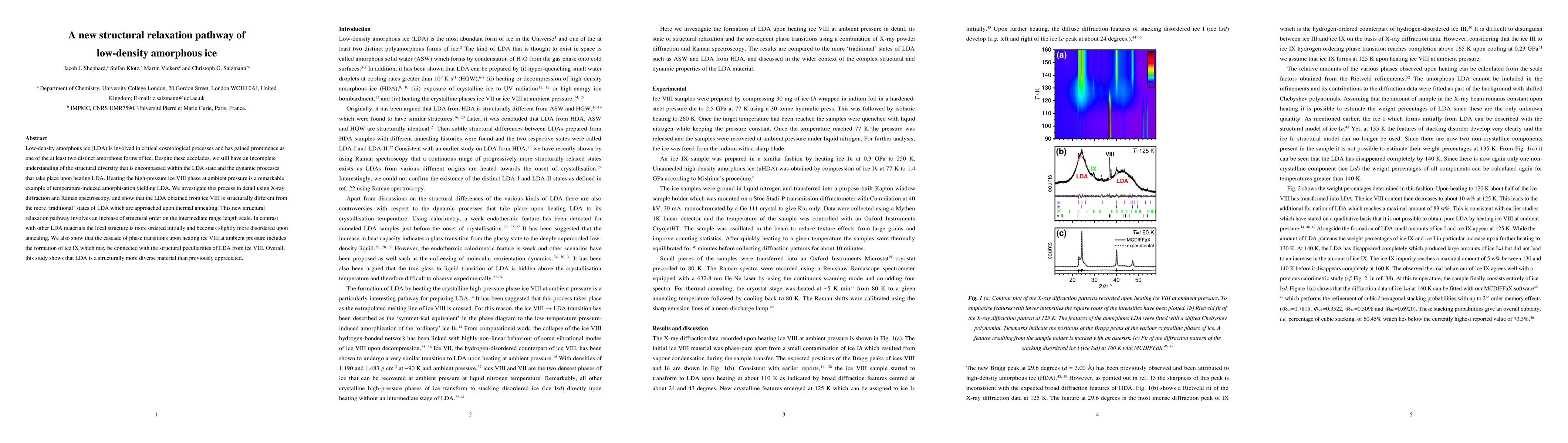 Low-density amorphous ice (LDA) is involved in critical cosmological processes and has gained prominence as one of the at least two distinct amorphous forms of ice. Despite these accolades, we still have an incomplete understanding of the structural diversity that is encompassed within the LDA state and the dynamic processes that take place upon heating LDA. Heating the high-pressure ice VIII phase at ambient pressure is a remarkable example of temperature-induced amorphisation yielding LDA. We investigate this process in detail using X-ray diffraction and Raman spectroscopy, and show that the LDA obtained from ice VIII is structurally different from the more 'traditional' states of LDA which are approached upon thermal annealing. This new structural relaxation pathway involves an increase of structural order on the intermediate range length scale. In contrast with other LDA materials the local structure is more ordered initially and becomes slightly more disordered upon annealing. We also show that the cascade of phase transitions upon heating ice VIII at ambient pressure includes the formation of ice IX which may be connected with the structural peculiarities of LDA from ice VIII. Overall, this study shows that LDA is a structurally more diverse material than previously appreciated.