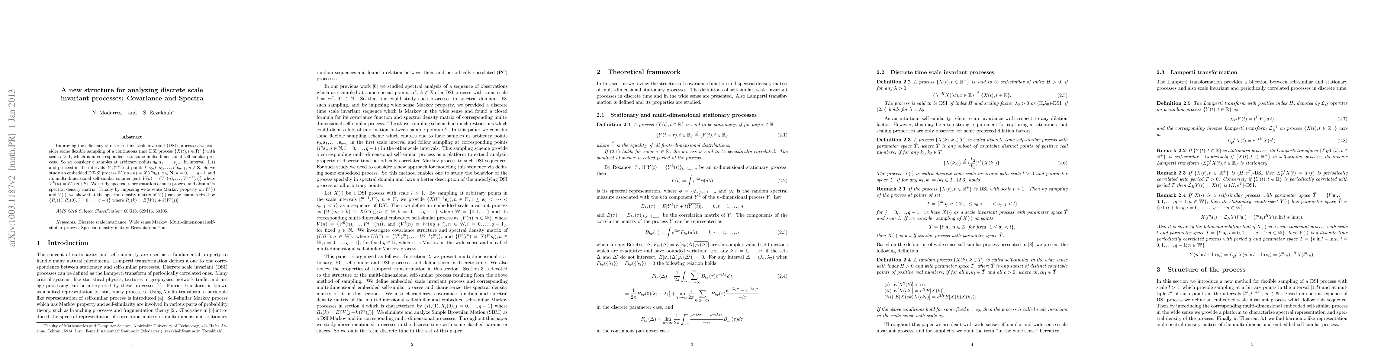 This paper proposes a new structure for analyzing discrete time scale invariant processes by sampling a continuous time scale invariant process at arbitrary points and intervals. It studies the spectral representation and density matrix of the resulting embedded discrete process and its multi-dimensional self-similar counterpart, showing that the spectral density matrix can be characterized by certain covariance functions.