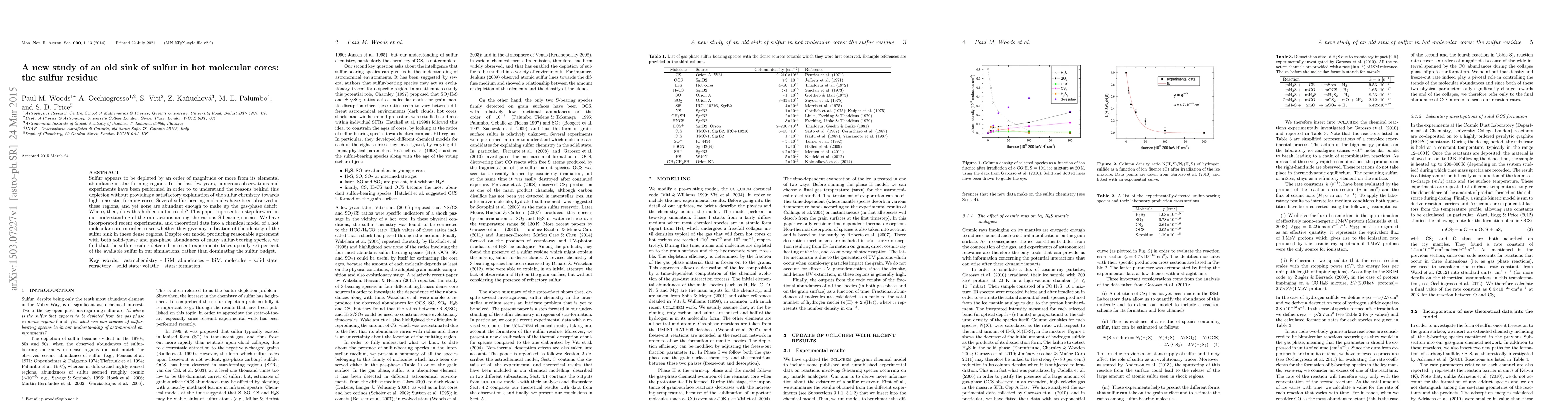 This paper investigates the depletion of sulfur in star-forming regions and proposes a chemical model incorporating recent data to identify the sulfur sink, finding that sulfur residue accounts for only ~6% of the sulfur budget, leaving the majority unaccounted for.