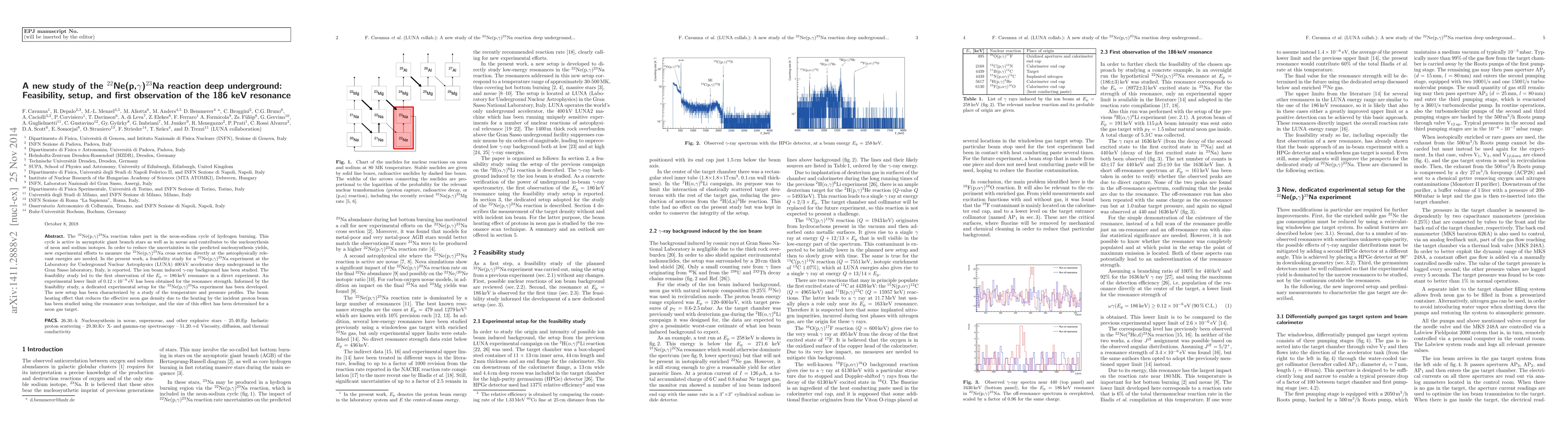 This study investigates the feasibility of measuring the $^{22}$Ne(p,$\gamma$)$^{23}$Na reaction deep underground at LUNA, leading to the first observation of the 186 keV resonance, which is crucial for understanding the neon-sodium cycle in stellar nucleosynthesis.
