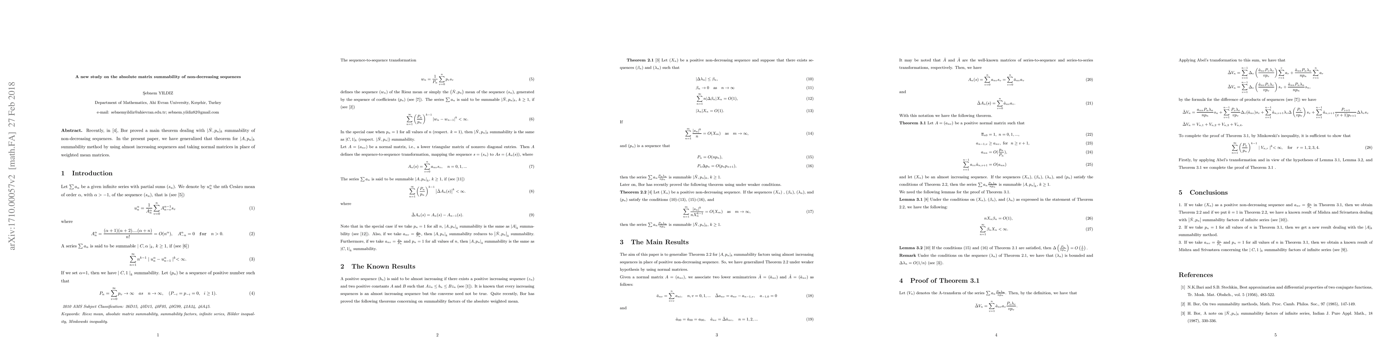 Researchers generalized a theorem from Bor's 2022 study on infinite series to include normal matrices, exploring the summability of sequences with non-decreasing terms.