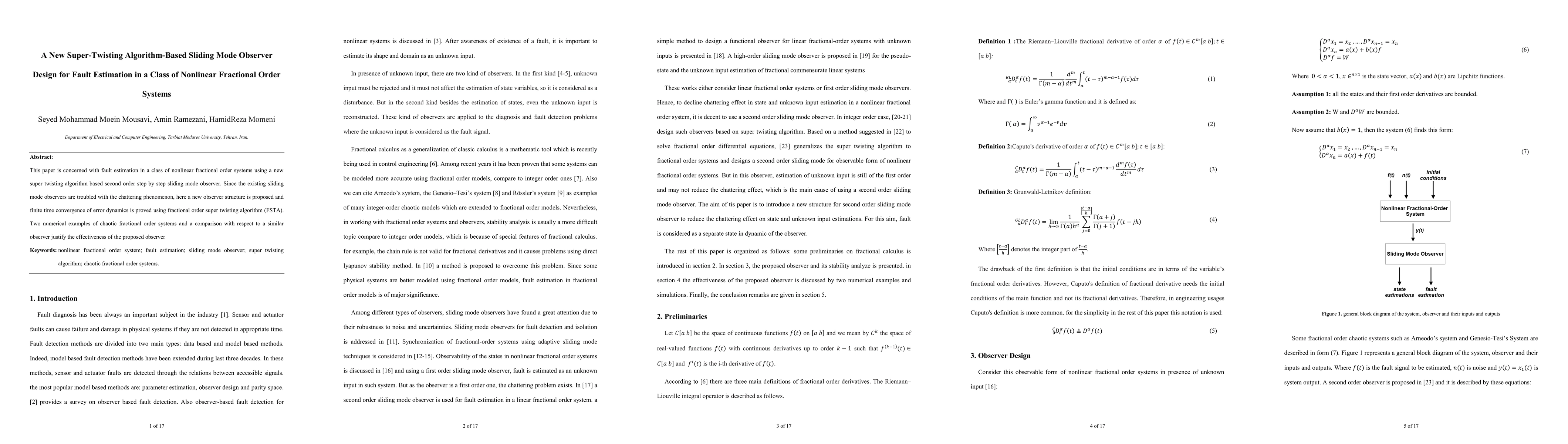 This paper proposes a new super-twisting algorithm-based sliding mode observer for fault estimation in nonlinear fractional order systems, addressing the chattering issue in existing observers. The finite time convergence of error dynamics is proven using a fractional order super twisting algorithm, validated through numerical examples.