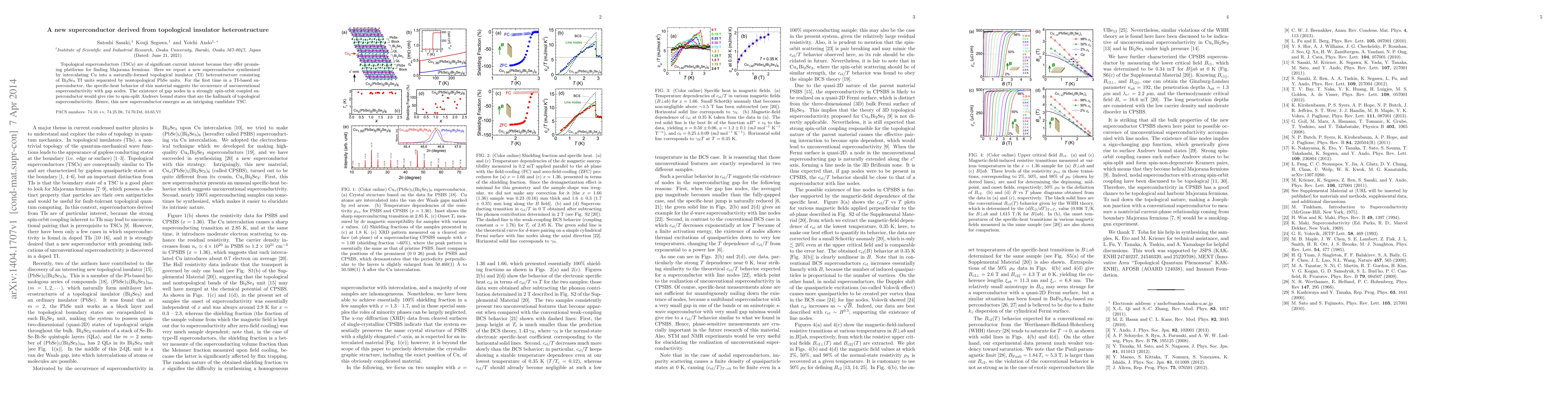 This paper reports the synthesis of a new superconductor by intercalating Cu into a topological insulator heterostructure, revealing unconventional superconductivity with gap nodes. This discovery positions the material as a promising candidate for topological superconductivity due to the potential for spin-split Andreev bound states.