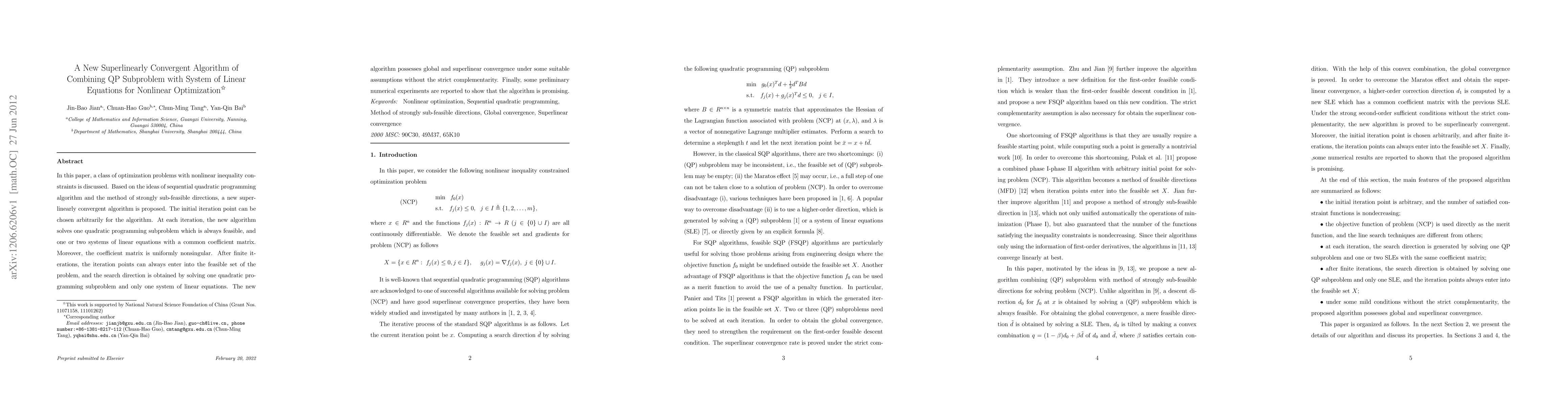 A new optimization algorithm is proposed for solving nonlinear problems with inequality constraints, offering global and superlinear convergence without strict complementarity. The algorithm combines quadratic programming subproblems with systems of linear equations to achieve faster convergence.