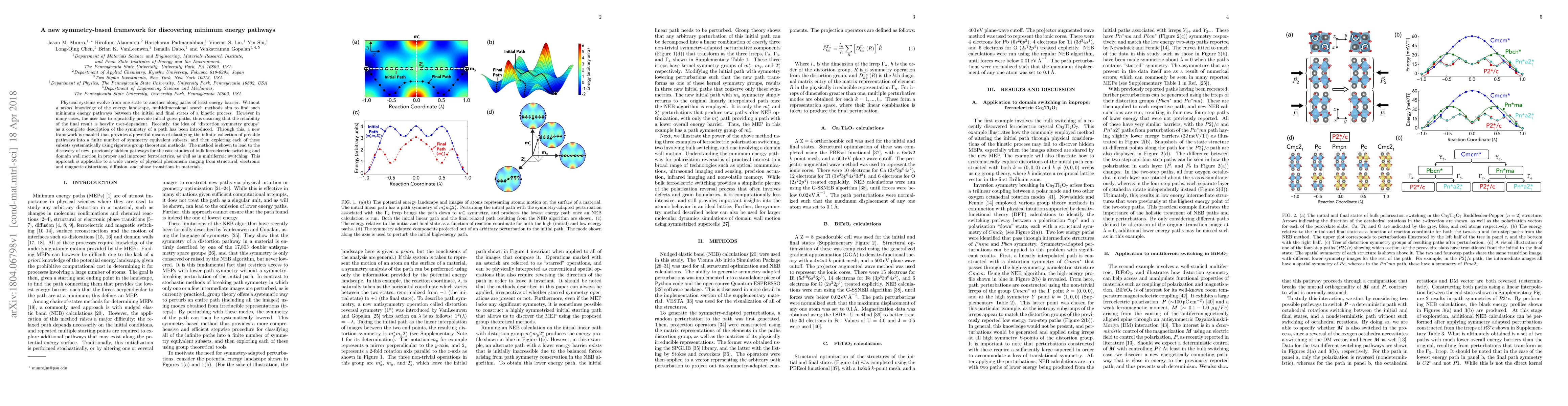 This paper introduces a symmetry-based framework utilizing "distortion symmetry groups" to systematically explore minimum energy pathways in physical systems, reducing user dependency and uncovering new pathways in ferroelectric and multiferroic switching. The method is broadly applicable across various physical phenomena.