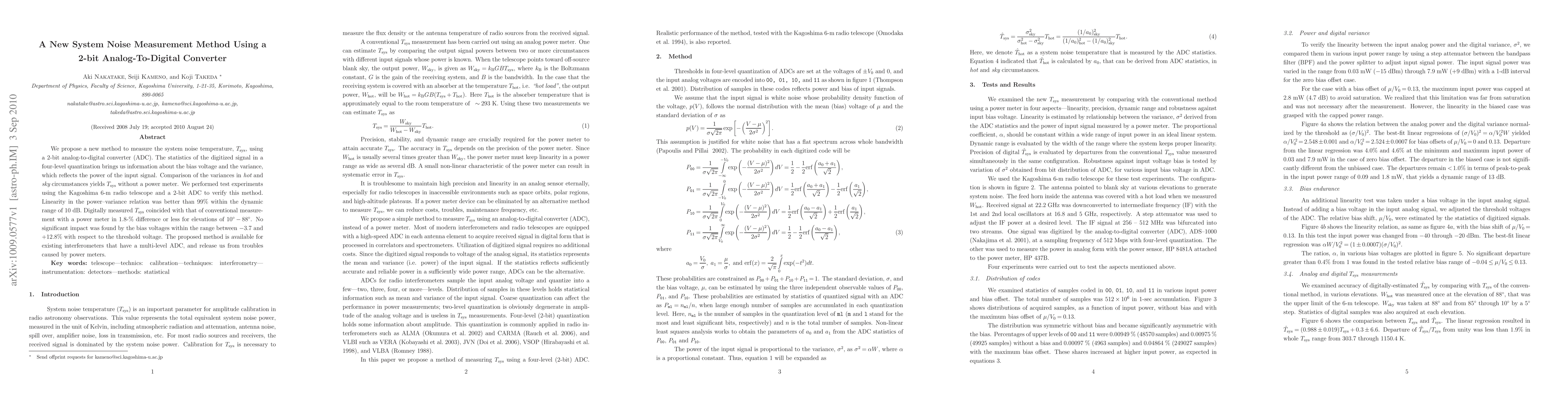This paper proposes a novel method to measure system noise temperature using a 2-bit ADC, leveraging the variance in digitized signal quantization levels to determine $T_{\rm sys}$ without a power meter. Experimental results show high accuracy and linearity, making it applicable for existing interferometers.