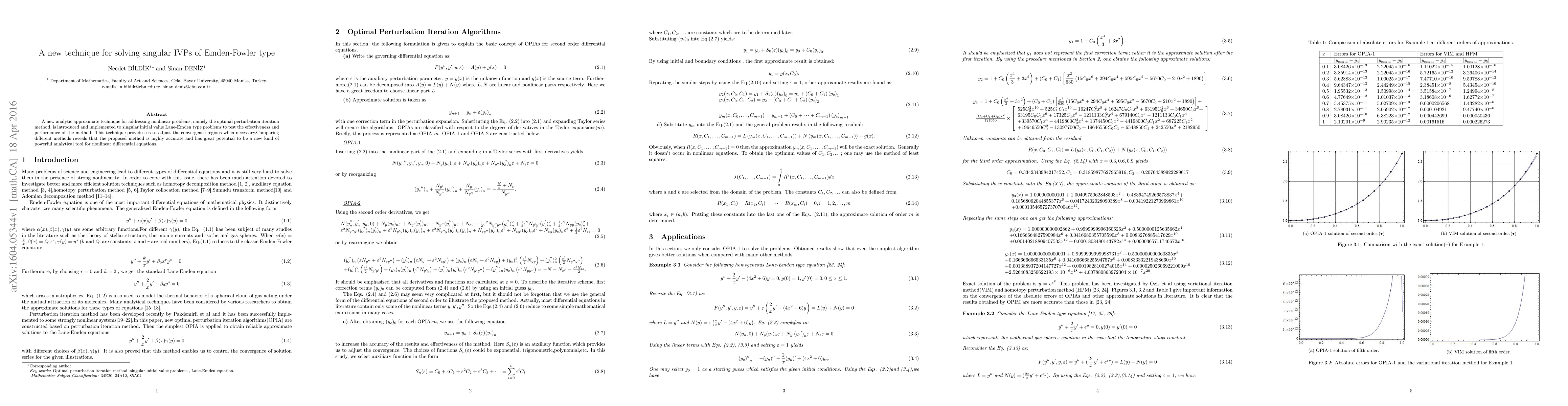 The paper introduces the optimal perturbation iteration method, a new analytic technique for solving singular initial value problems of Emden-Fowler type, demonstrating its effectiveness and high accuracy compared to other methods. This method offers adjustable convergence regions, indicating its potential as a powerful analytical tool for nonlinear differential equations.