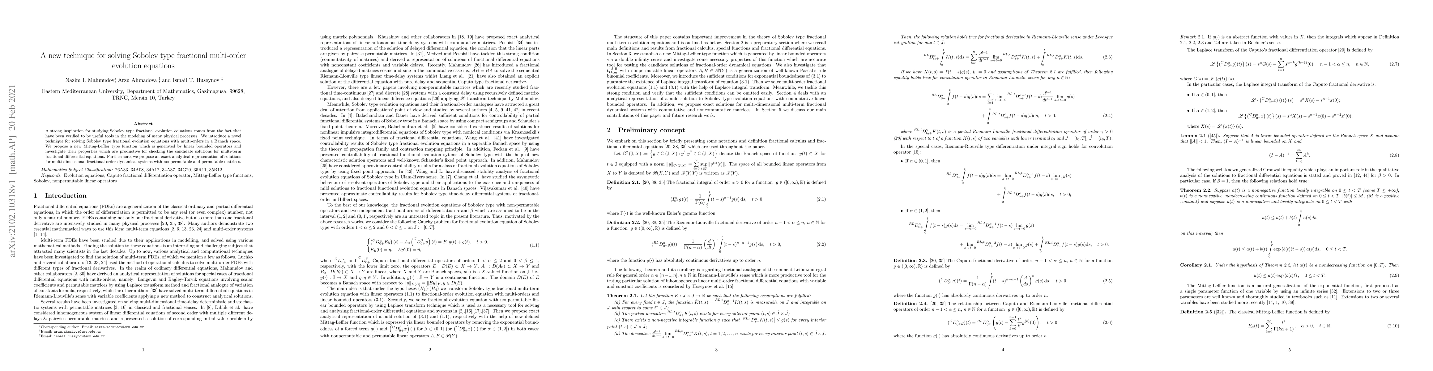 This paper introduces a novel technique for solving Sobolev type fractional multi-order evolution equations using a new Mittag-Leffler type function generated by linear bounded operators. It provides an exact analytical representation for solutions of multi-dimensional fractional-order dynamical systems with both nonpermutable and permutable matrices.