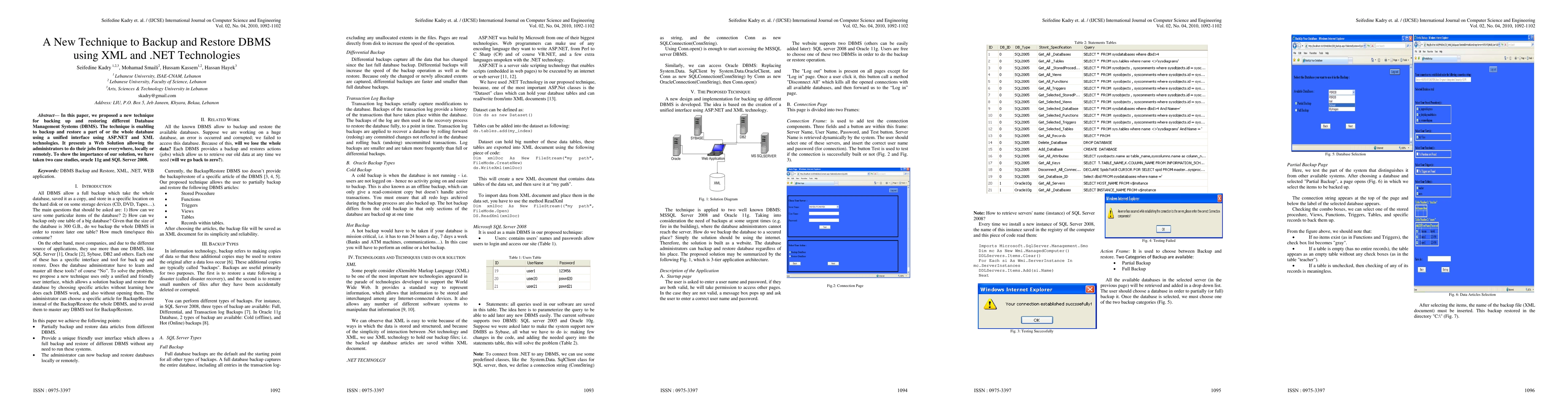 In this paper, we proposed a new technique for backing up and restoring different Database Management Systems (DBMS). The technique is enabling to backup and restore a part of or the whole database using a unified interface using ASP.NET and XML technologies. It presents a Web Solution allowing the administrators to do their jobs from everywhere, locally or remotely. To show the importance of our solution, we have taken two case studies, oracle 11g and SQL Server 2008.