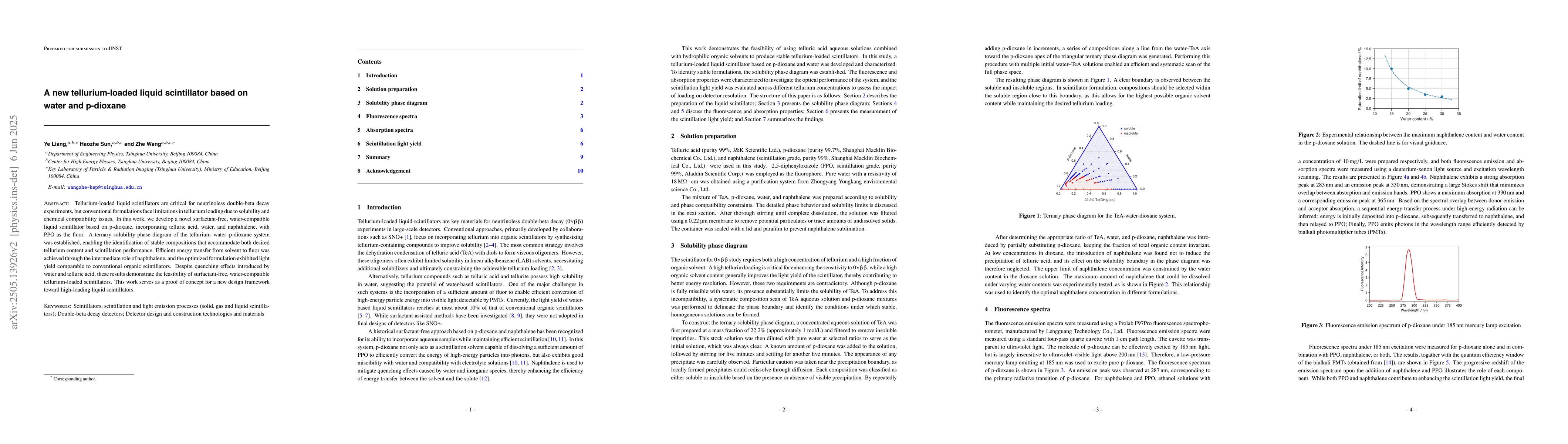 The development of a novel tellurium-loaded liquid scintillator based on p-dioxane, which is water-compatible and surfactant-free.