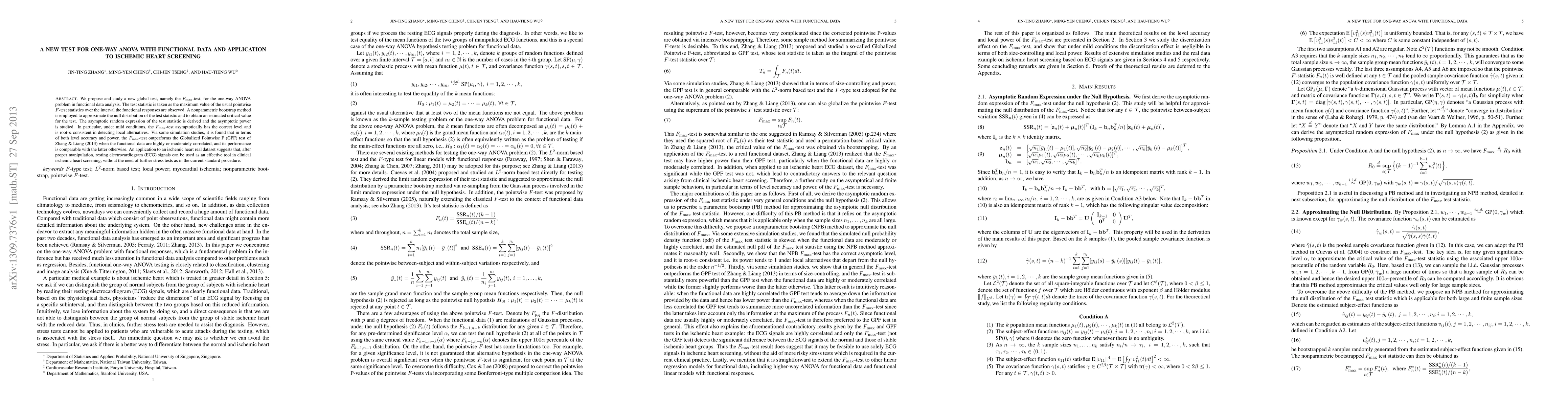 A new test called $F_{ ext{max}}$-test is proposed for one-way ANOVA with functional data, showing improved performance over existing tests in detecting local alternatives, and demonstrates its effectiveness in ischemic heart screening through a real dataset application.
