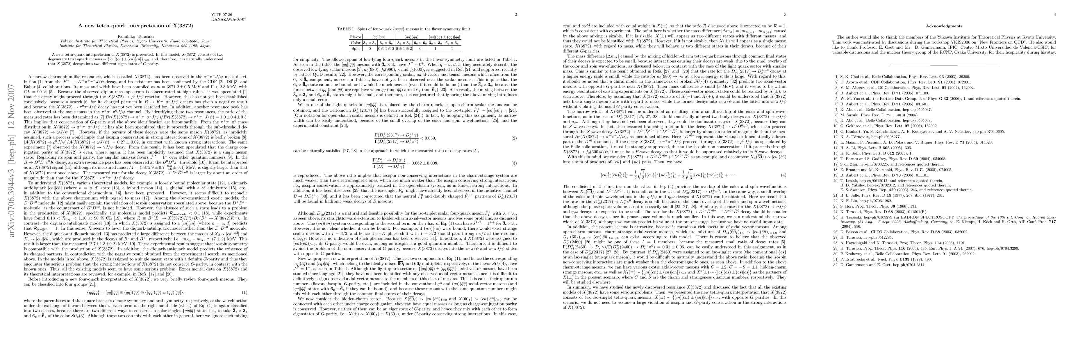 This paper proposes a new tetra-quark interpretation for X(3872) as two degenerate tetra-quark mesons, {[cn](cbar nbar) + (cn)[cbar nbar]}_{I=0}, explaining its decay into two distinct G-parity eigenstates.