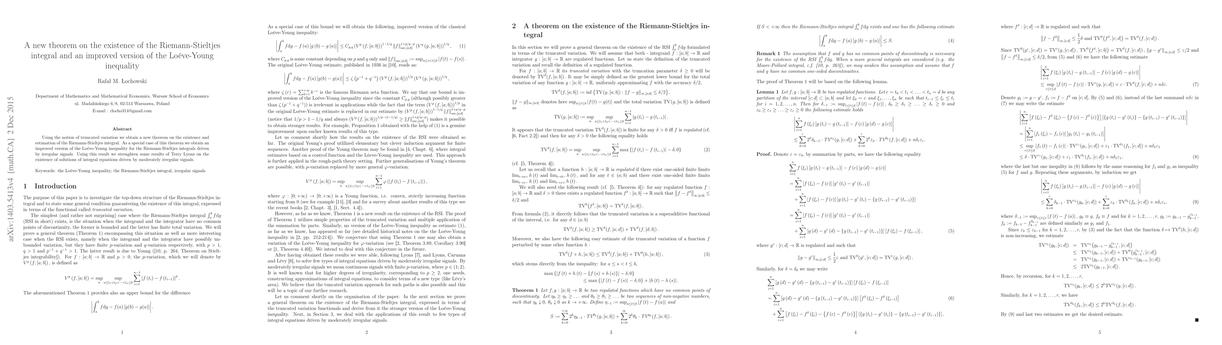 Using the notion of the truncated variation we obtain a new theorem on the existence and estimation of the Riemann-Stieltjes integral. As a special case of this theorem we obtain an improved version of the Lo\'{e}ve-Young inequality for the Riemann-Stieltjes integrals driven by irregular signals. Using this result we strenghten some results of Terry Lyons on the existence of solutions of integral equations driven by moderately irregular signals.