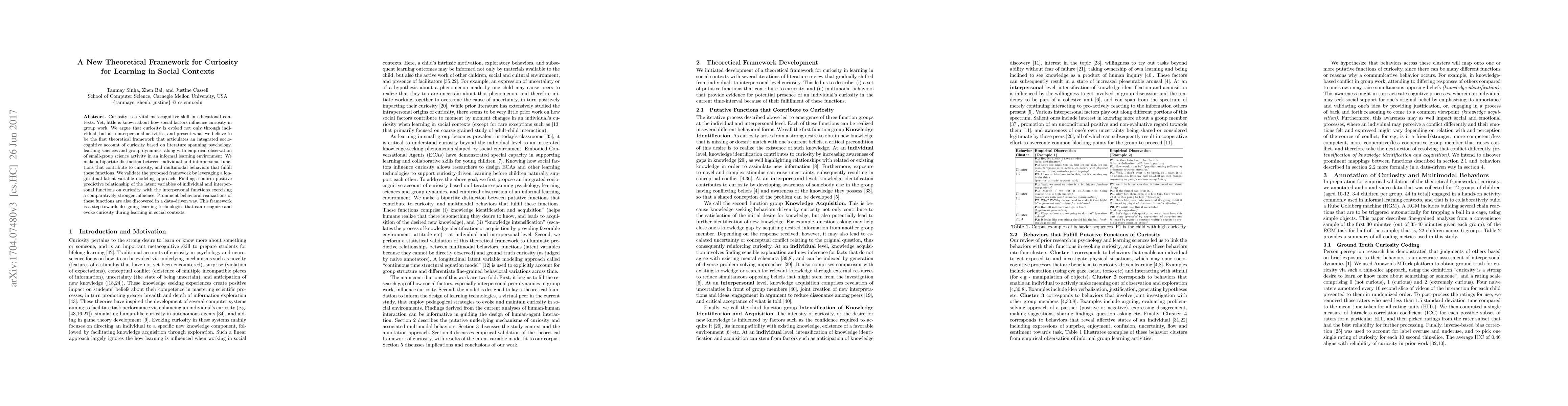 The study validates the framework using longitudinal data and suggests it can inform the design of learning technologies to recognize and evoke curiosity during social learning contexts.