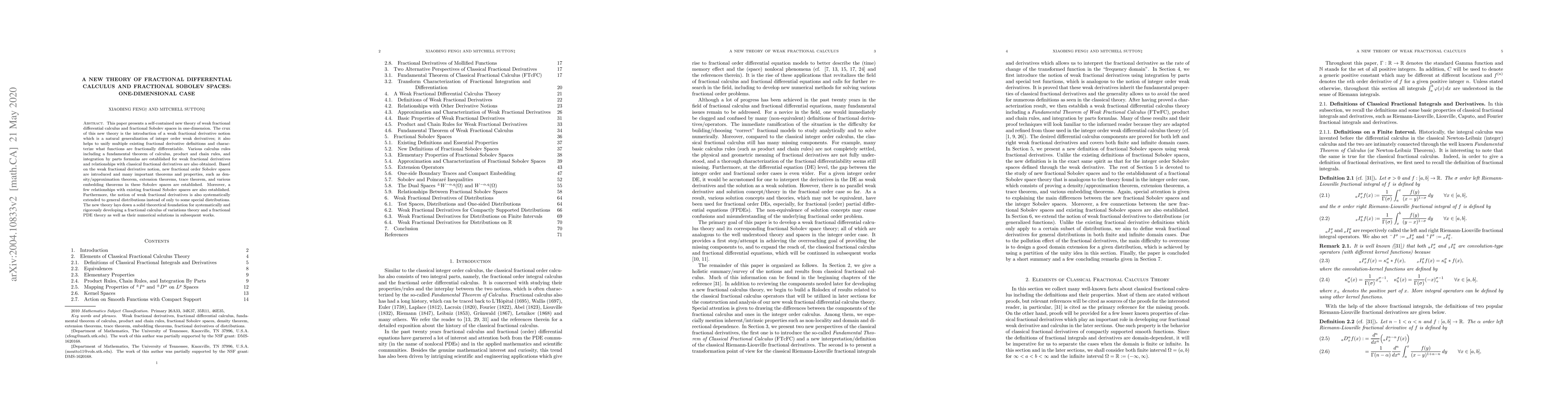 This paper introduces a new theory of weak fractional differential calculus and fractional Sobolev spaces, generalizing integer order weak derivatives, and establishing calculus rules and properties. It lays a foundation for future fractional calculus of variations and PDE theories.