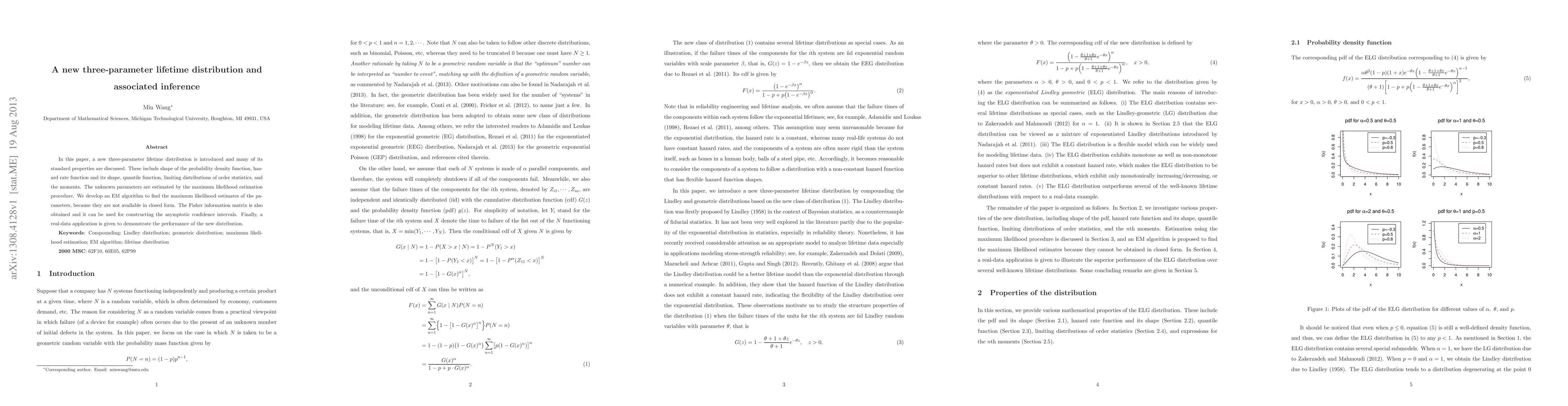 A new three-parameter lifetime distribution is introduced, along with an associated method for estimating its parameters using maximum likelihood estimation and an EM algorithm, and its performance is demonstrated through a real-data application.