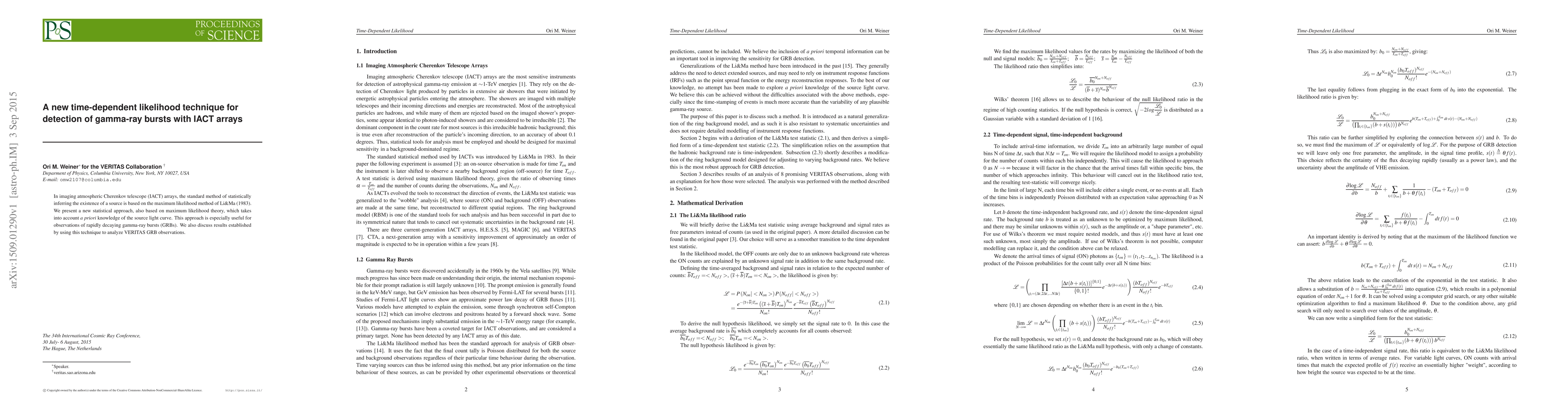In imaging atmospheric Cherenkov telescope (IACT) arrays, the standard method of statistically inferring the existence of a source is based on the maximum likelihood method of Li&Ma (1983). We present a new statistical approach, also based on maximum likelihood theory, which takes into account a priori knowledge of the source light curve. This approach is especially useful for observations of rapidly decaying gamma-ray bursts (GRBs). We also discuss results established by using this technique to analyze VERITAS GRB observations.