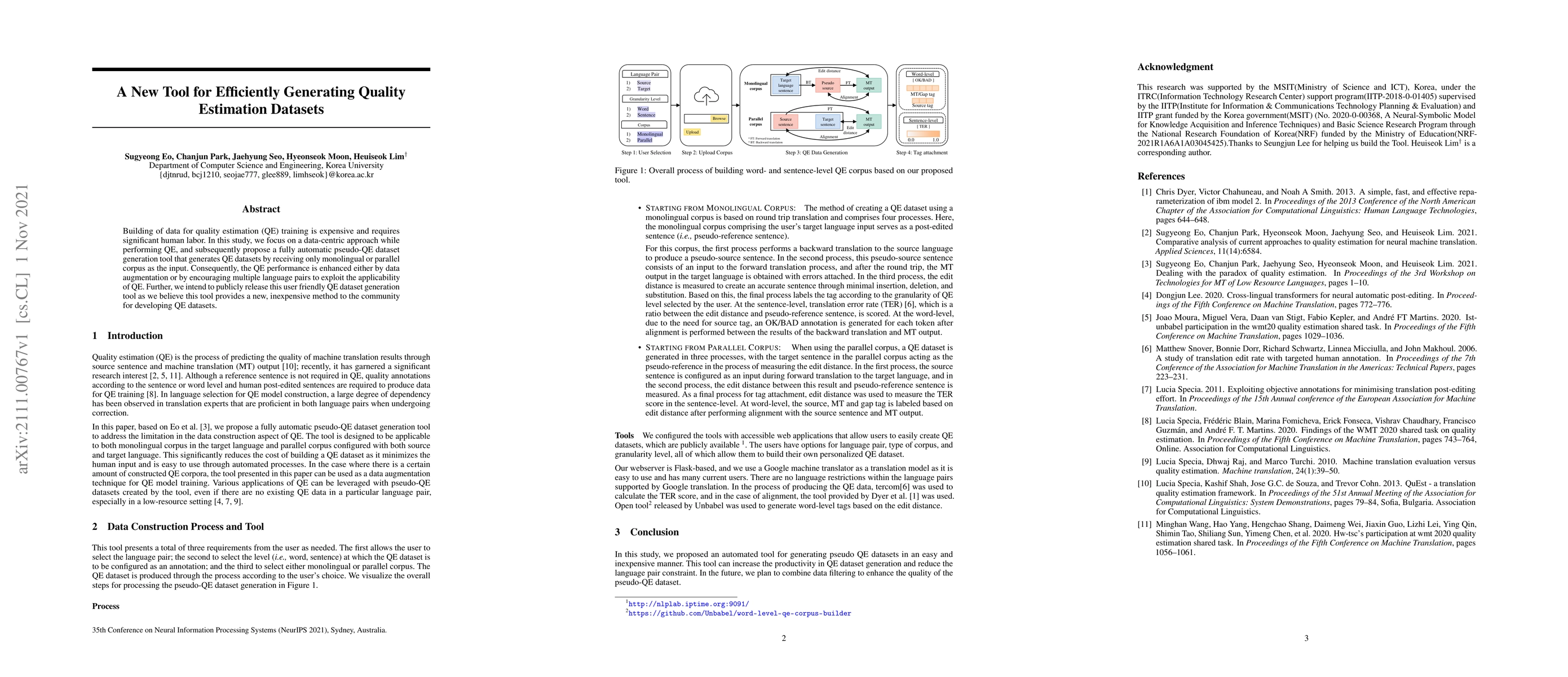 The proposed tool presents a fully automatic pseudo-QE dataset generation method that leverages monolingual or parallel corpora.