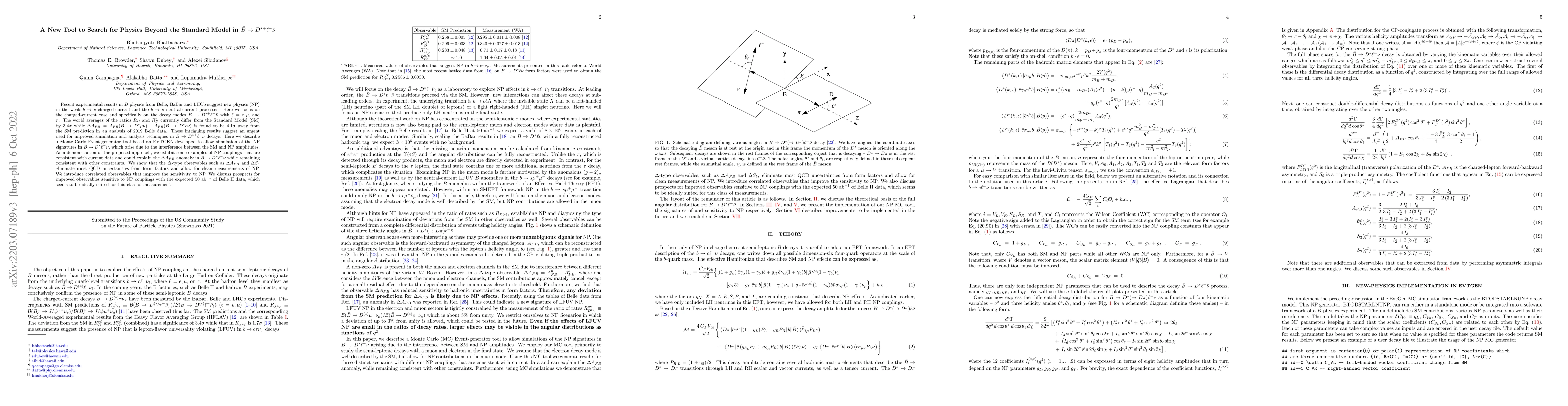 Recent experimental results in $B$ physics from Belle, BaBar and LHCb suggest new physics (NP) in the weak $b\to c$ charged-current and the $b\to s$ neutral-current processes. Here we focus on the charged-current case and specifically on the decay modes $B\to D^{*+}\ell^- \bar{\nu}$ with $\ell = e, \mu,$ and $\tau$. The world averages of the ratios $R_D$ and $R_D^{*}$ currently differ from the Standard Model (SM) by $3.4\sigma$ while $\Delta A_{FB} = A_{FB}(B\to D^{*} \mu\nu) - A_{FB} (B\to D^{*} e \nu)$ is found to be $4.1\sigma$ away from the SM prediction in an analysis of 2019 Belle data. These intriguing results suggest an urgent need for improved simulation and analysis techniques in $B\to D^{*+}\ell^- \bar{\nu}$ decays. Here we describe a Monte Carlo Event-generator tool based on EVTGEN developed to allow simulation of the NP signatures in $B\to D^*\ell^- \nu$, which arise due to the interference between the SM and NP amplitudes. As a demonstration of the proposed approach, we exhibit some examples of NP couplings that are consistent with current data and could explain the $\Delta A_{FB}$ anomaly in $B\to D^*\ell^- \nu$ while remaining consistent with other constraints. We show that the $\Delta$-type observables such as $\Delta A_{FB}$ and $\Delta S_5$ eliminate most QCD uncertainties from form factors and allow for clean measurements of NP. We introduce correlated observables that improve the sensitivity to NP. We discuss prospects for improved observables sensitive to NP couplings with the expected 50 ab$^{-1}$ of Belle II data, which seems to be ideally suited for this class of measurements.
