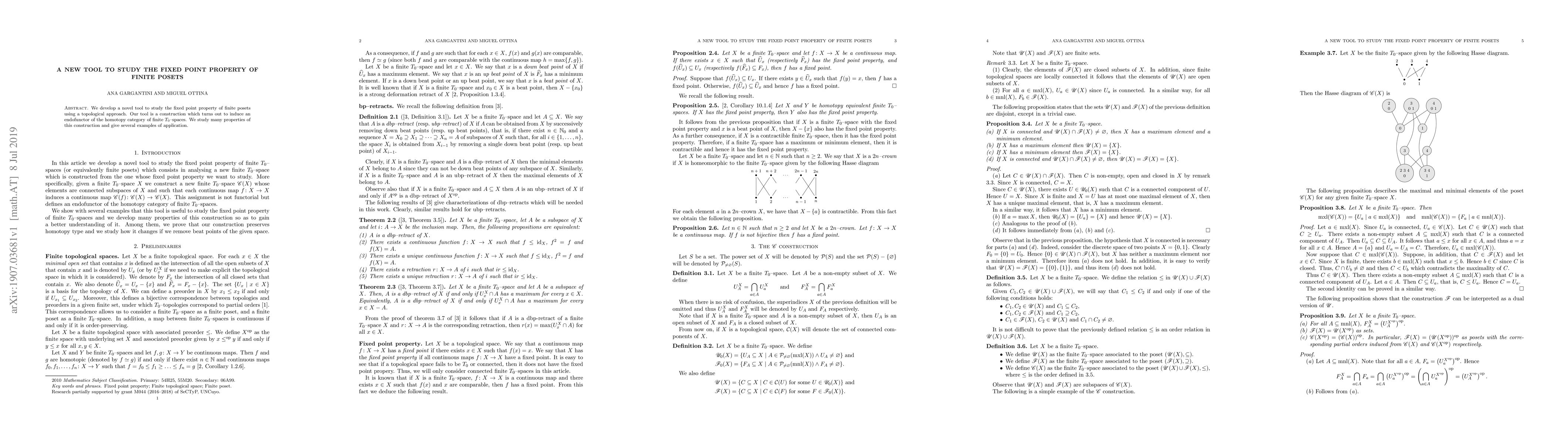 This paper introduces a new topological tool to investigate the fixed point property of finite posets, constructing an endofunctor in the homotopy category of finite $T_0$-spaces and exploring its properties and applications.