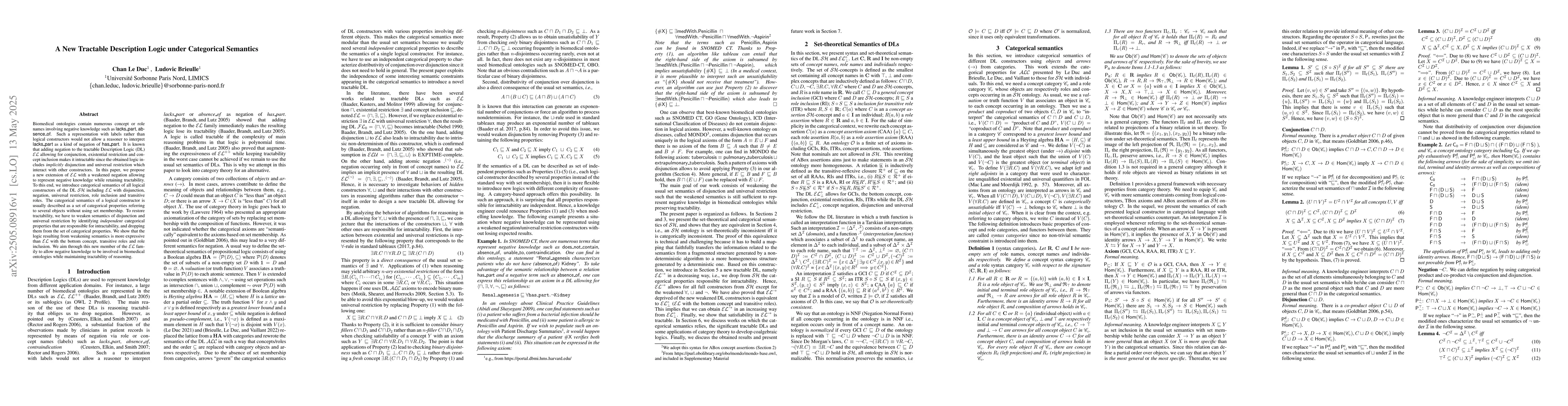 The paper introduces a new extension of the tractable Description Logic EL, incorporating weakened negation to represent negative knowledge while preserving tractability. Categorical semantics for all logical constructors of SH, including EL with disjunction, negation, universal restriction, role inclusion, and transitive roles, are proposed.