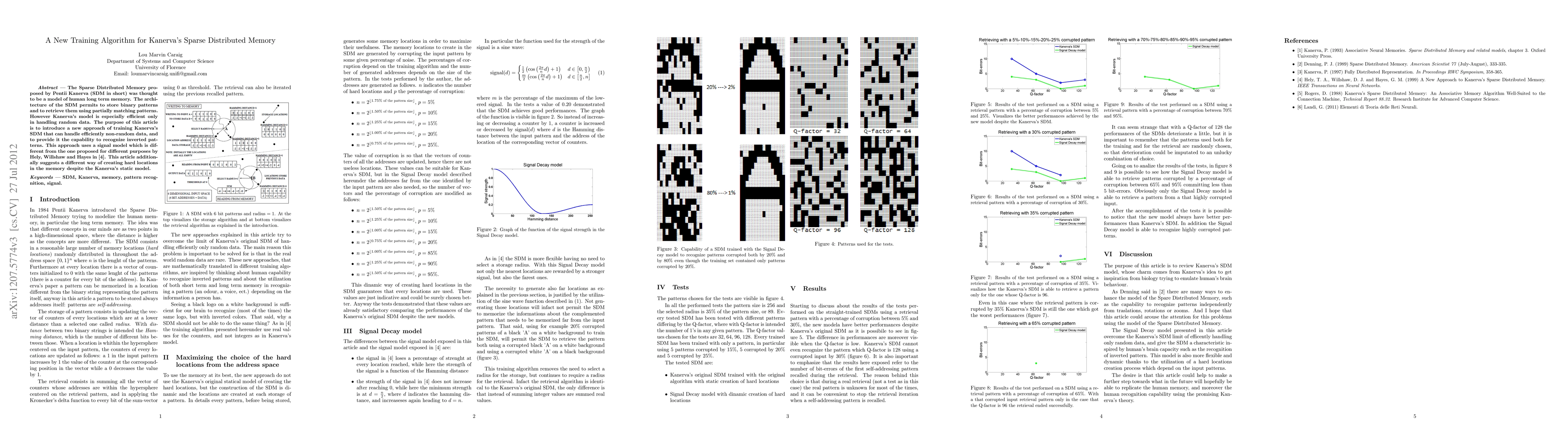 A new training algorithm for Kanerva's Sparse Distributed Memory improves its ability to handle non-random data and recognize inverted patterns. This innovation enhances the model's efficiency and capability.