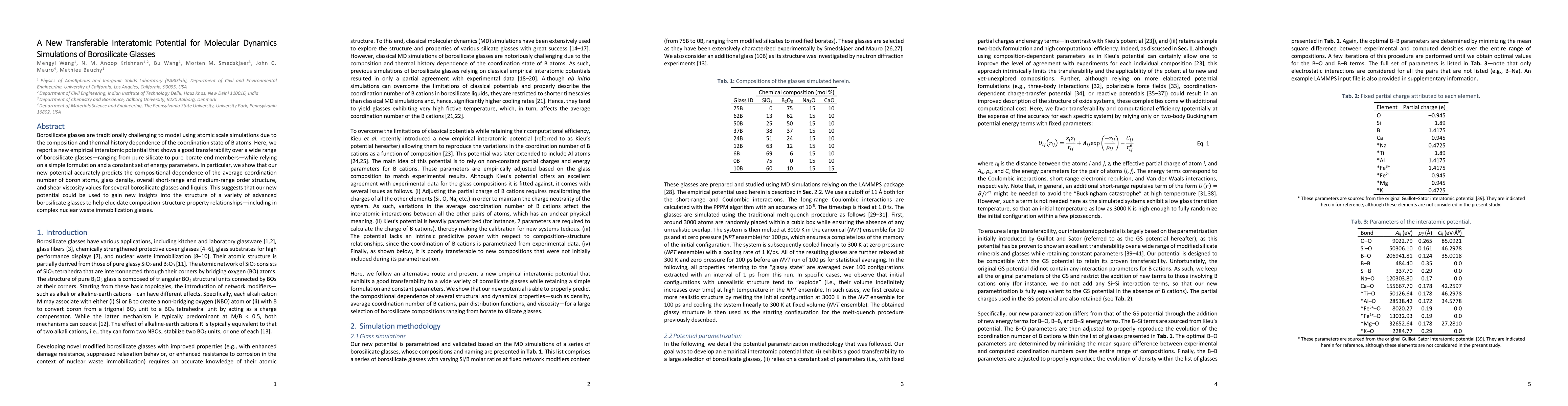 This paper introduces a new transferable interatomic potential for molecular dynamics simulations of borosilicate glasses, demonstrating its accuracy in predicting the compositional dependence of boron coordination, density, structure, and viscosity across a range of borosilicate compositions. The potential's success suggests it can provide insights into the structure-property relationships of advanced borosilicate glasses.