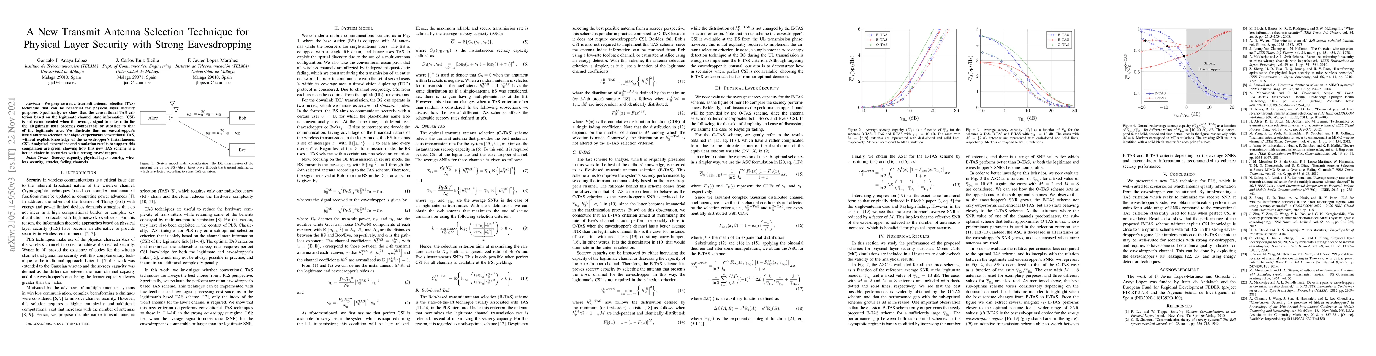 This paper introduces a novel transmit antenna selection technique that enhances physical layer security by outperforming conventional methods when the eavesdropper's signal strength is comparable to or exceeds that of the legitimate user. The proposed method selects antennas based on eavesdropper metrics, providing better security without requiring knowledge of the eavesdropper's channel state information.