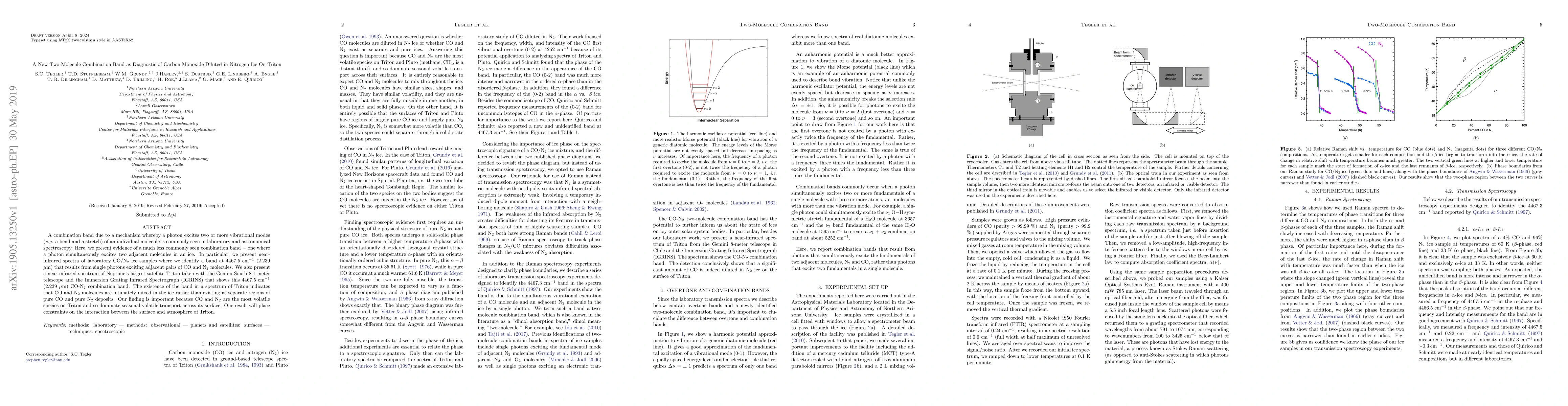 Scientists have identified a new combination band in the spectra of CO/N2 ice samples on Neptune's moon Triton, indicating that carbon monoxide and nitrogen molecules are intimately mixed in the ice.