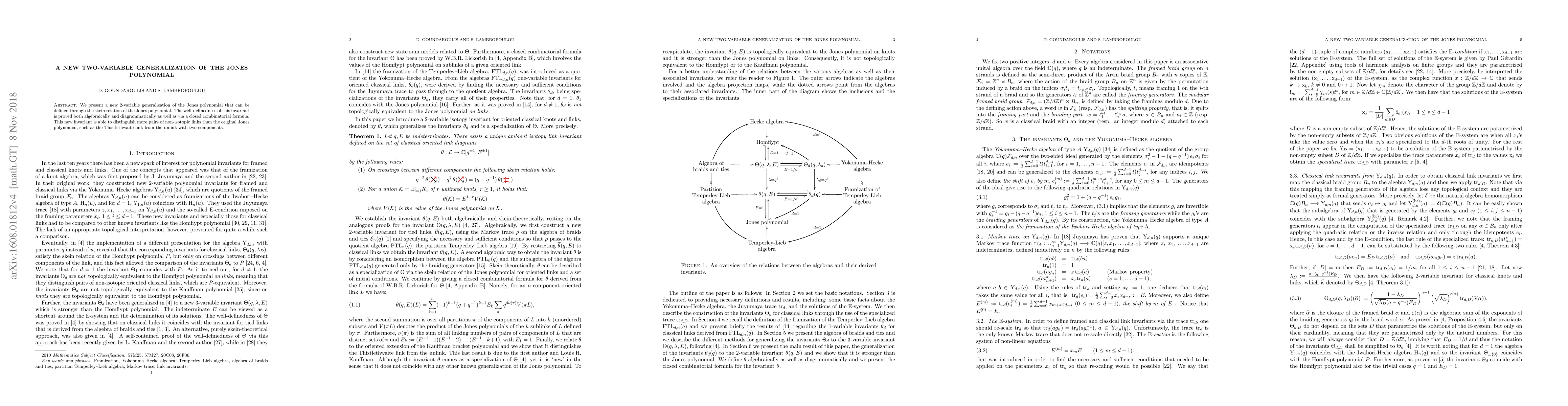We present a new 2-variable generalization of the Jones polynomial that can be defined through the skein relation of the Jones polynomial. The well-definedness of this new generalization is proved both algebraically and diagrammatically as well as via a closed combinatorial formula. This new invariant is able to distinguish more pairs of non-isotopic links than the original Jones polynomial such as the Thistlethwaite link from the unlink with two components.