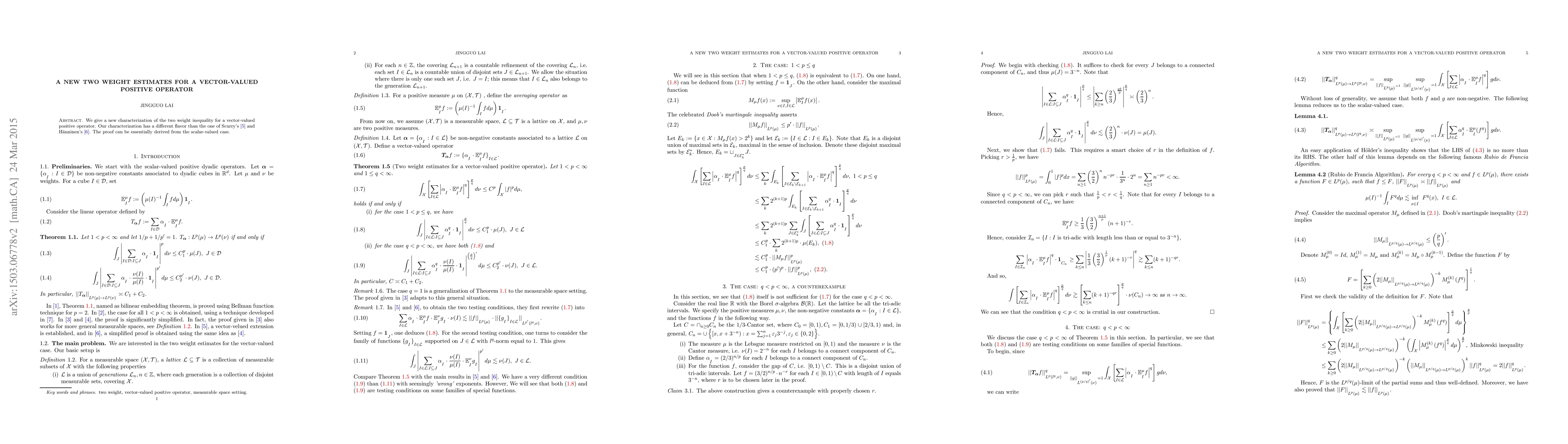 Summary: This paper presents a novel characterization of the two weight inequality for vector-valued positive operators, differing from existing methods by Scurry and H\"{a}nninen, and demonstrates its proof through a scalar-valued approach.