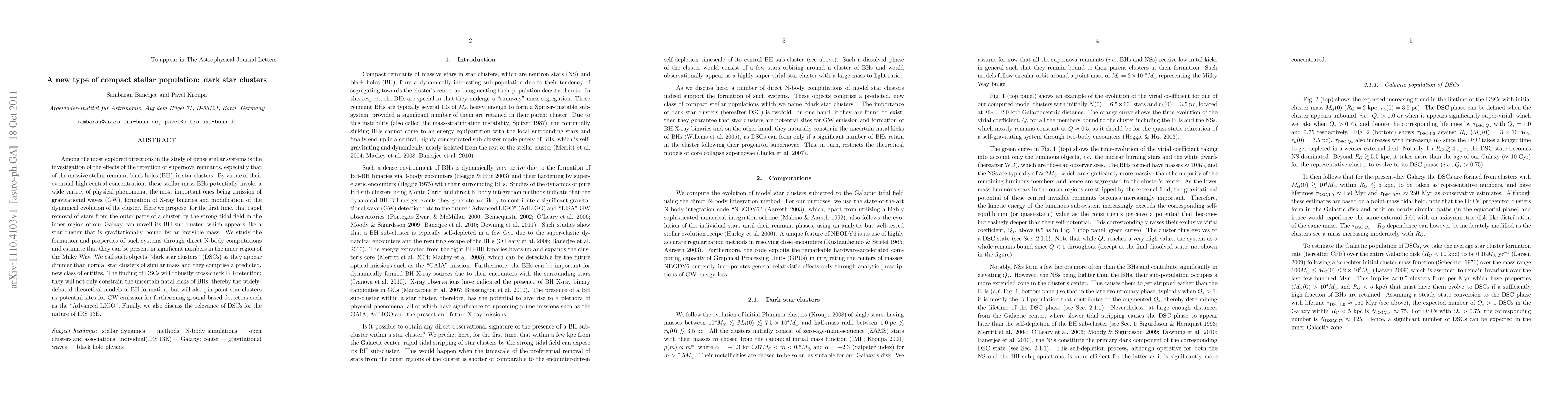 Among the most explored directions in the study of dense stellar systems is the investigation of the effects of the retention of supernova remnants, especially that of the massive stellar remnant black holes (BHs), in star clusters. By virtue of their eventual high central concentration, these stellar mass BHs potentially invoke a wide variety of physical phenomena, the most important ones being emission of gravitational waves (GWs), formation of X-ray binaries, and modification of the dynamical evolution of the cluster. Here we propose, for the first time, that rapid removal of stars from the outer parts of a cluster by the strong tidal field in the inner region of our Galaxy can unveil its BH sub-cluster, which appears as a star cluster that is gravitationally bound by an invisible mass. We study the formation and properties of such systems through direct N-body computations and estimate that they can be present in significant numbers in the inner region of the Milky Way. We call such objects "dark star clusters" (DSCs) as they appear dimmer than normal star clusters of similar mass and they comprise a predicted, new class of entities. The finding of DSCs will robustly cross-check BH retention; they will not only constrain the uncertain natal kicks of BHs, thereby the widely debated theoretical models of BH formation, but will also pinpoint star clusters as potential sites for GW emission for forthcoming ground-based detectors such as the Advanced LIGO. Finally, we also discuss the relevance of DSCs for the nature of IRS 13E.