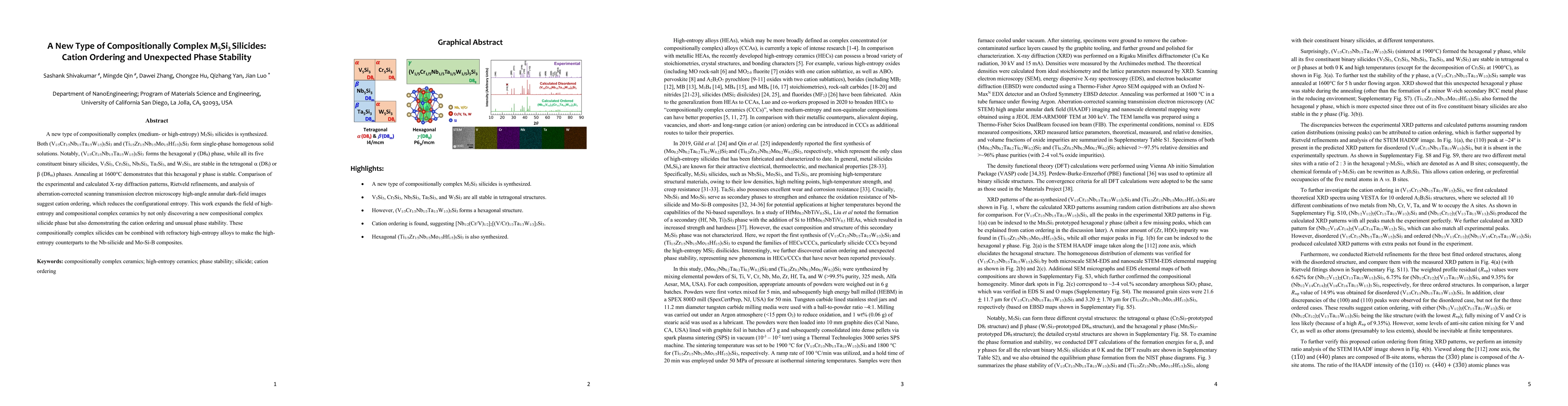 The paper presents a novel synthesis of compositionally complex M5Si3 silicides and demonstrates cation ordering and unexpected phase stability, expanding the understanding of high-entropy and compositional complex ceramics.