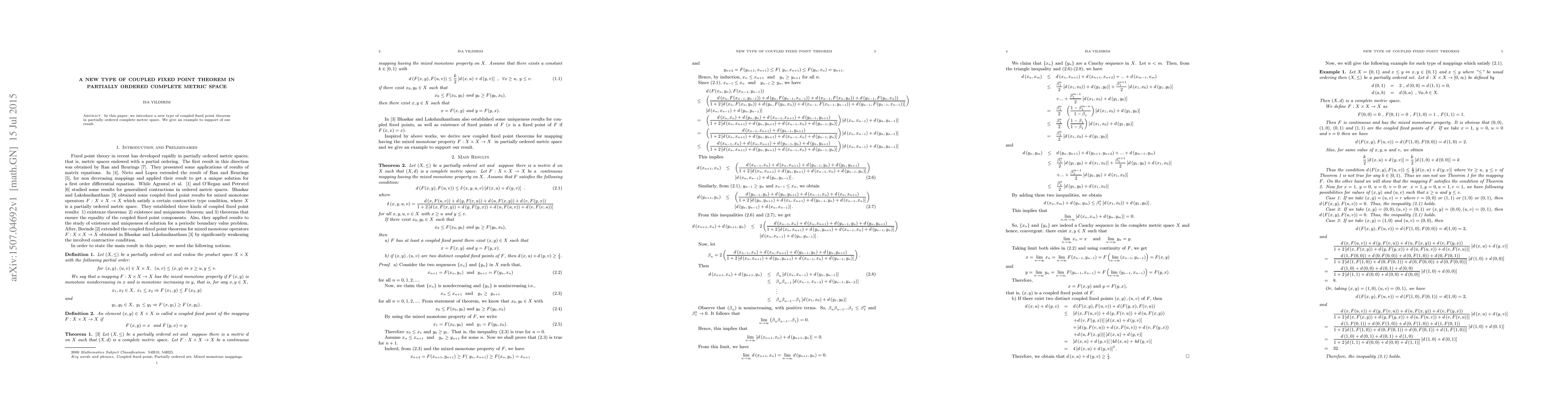 In this paper, we introduce a new type of coupled fixed point theorem in partially ordered complete metric space. We give an example to support of our result.