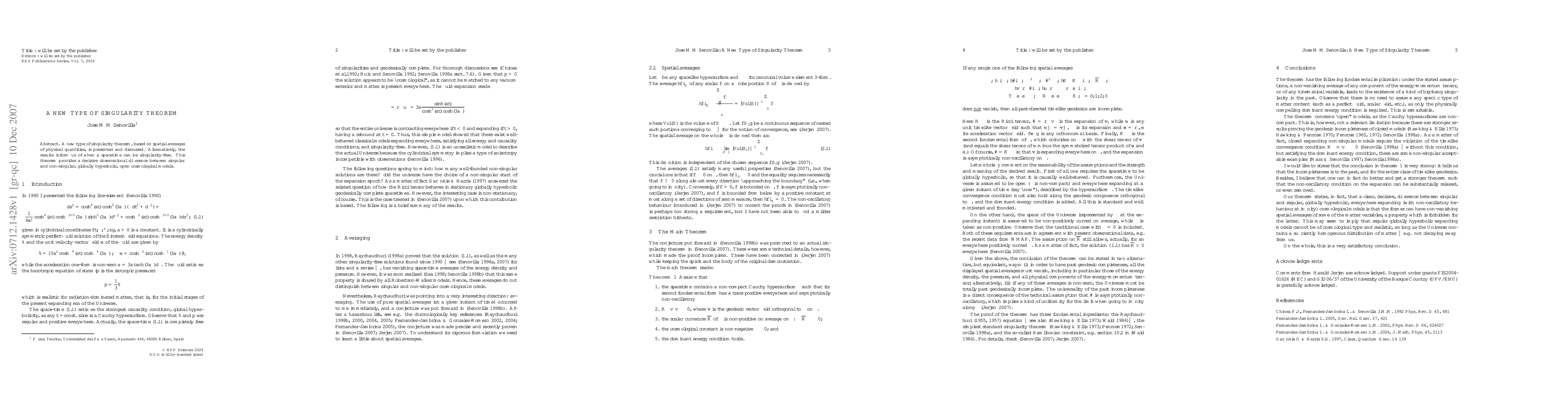 A new type of singularity theorem, based on spatial averages of physical quantities, is presented and discussed. Alternatively, the results inform us of when a spacetime can be singularity-free. This theorem provides a decisive observational difference between singular and non-singular, globally hyperbolic, open cosmological models.