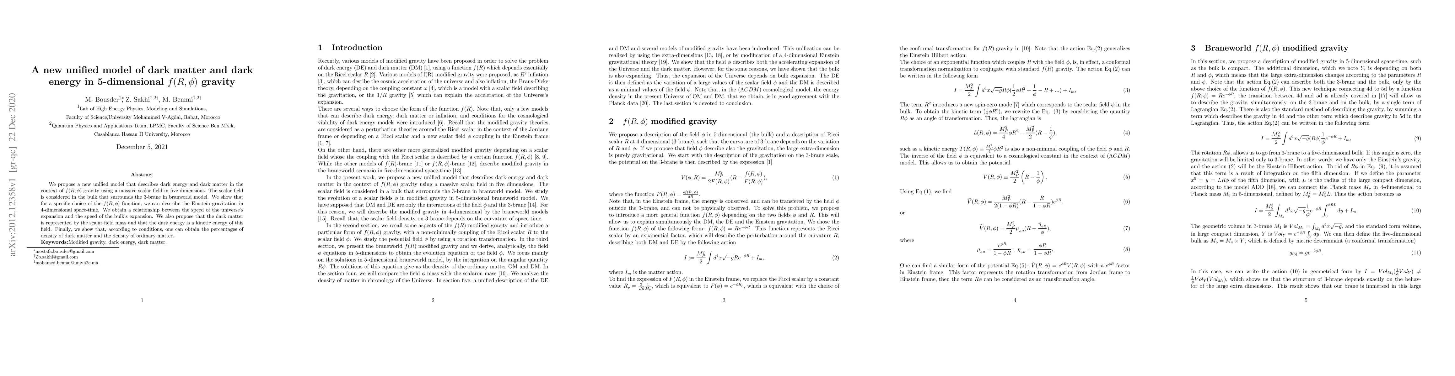 This paper proposes a new unified model of dark matter and dark energy in 5-dimensional f(R,φ) gravity, suggesting that the scalar field represents both dark matter and dark energy, with their densities calculable from specific conditions.