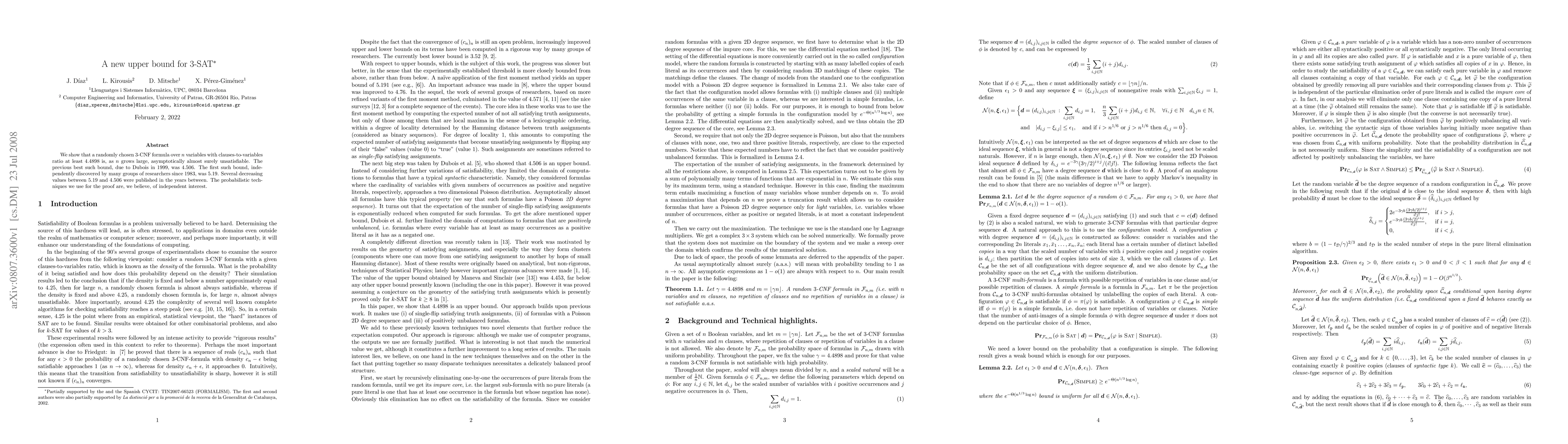 We show that a randomly chosen 3-CNF formula over n variables with clauses-to-variables ratio at least 4.4898 is, as n grows large, asymptotically almost surely unsatisfiable. The previous best such bound, due to Dubois in 1999, was 4.506. The first such bound, independently discovered by many groups of researchers since 1983, was 5.19. Several decreasing values between 5.19 and 4.506 were published in the years between. The probabilistic techniques we use for the proof are, we believe, of independent interest.
