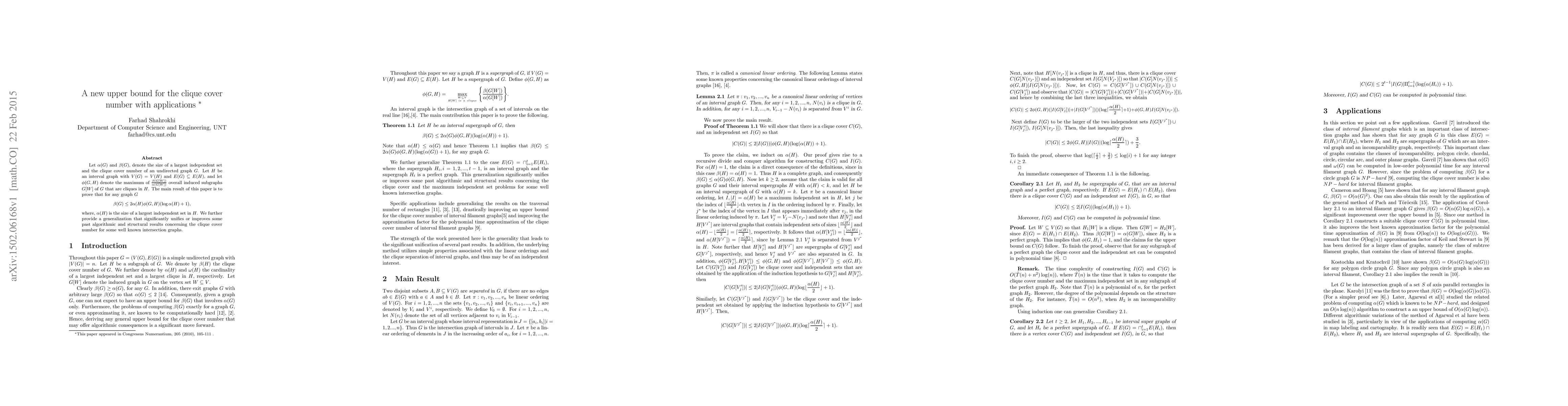 This paper establishes a new upper bound for the clique cover number of a graph $G$ using interval graphs $H$, showing that $\beta(G) \le 2 \alpha(H)\phi(G,H)(\log \alpha(H)+1)$. It also generalizes and improves prior results regarding the clique cover number for intersection graphs.
