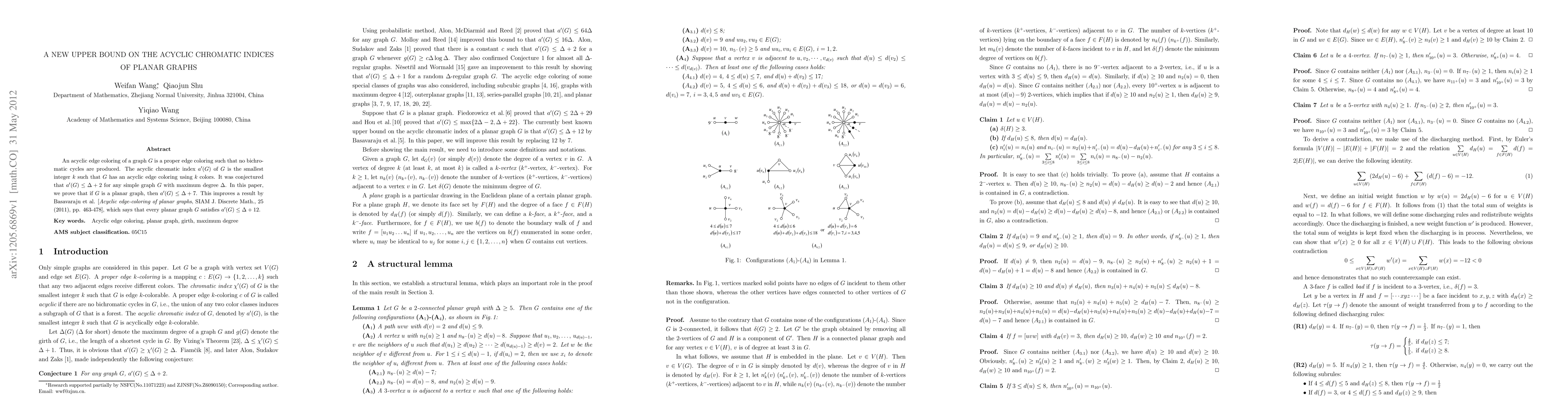 This paper establishes a new upper bound for the acyclic chromatic index of planar graphs, proving that $a'(G) \leq \Delta + 7$, which improves upon the previous bound of $\Delta + 12$ by Basavaraju et al. for planar graphs.