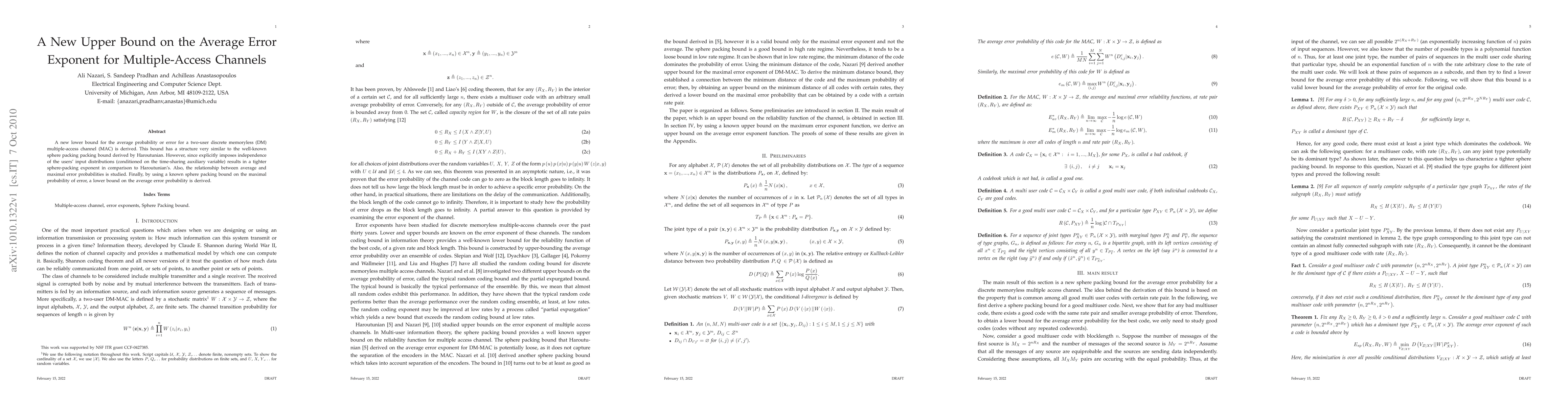 A new lower bound for the average probability or error for a two-user discrete memoryless (DM) multiple-access channel (MAC) is derived. This bound has a structure very similar to the well-known sphere packing packing bound derived by Haroutunian. However, since explicitly imposes independence of the users' input distributions (conditioned on the time-sharing auxiliary variable) results in a tighter sphere-packing exponent in comparison to Haroutunian's. Also, the relationship between average and maximal error probabilities is studied. Finally, by using a known sphere packing bound on the maximal probability of error, a lower bound on the average error probability is derived.
