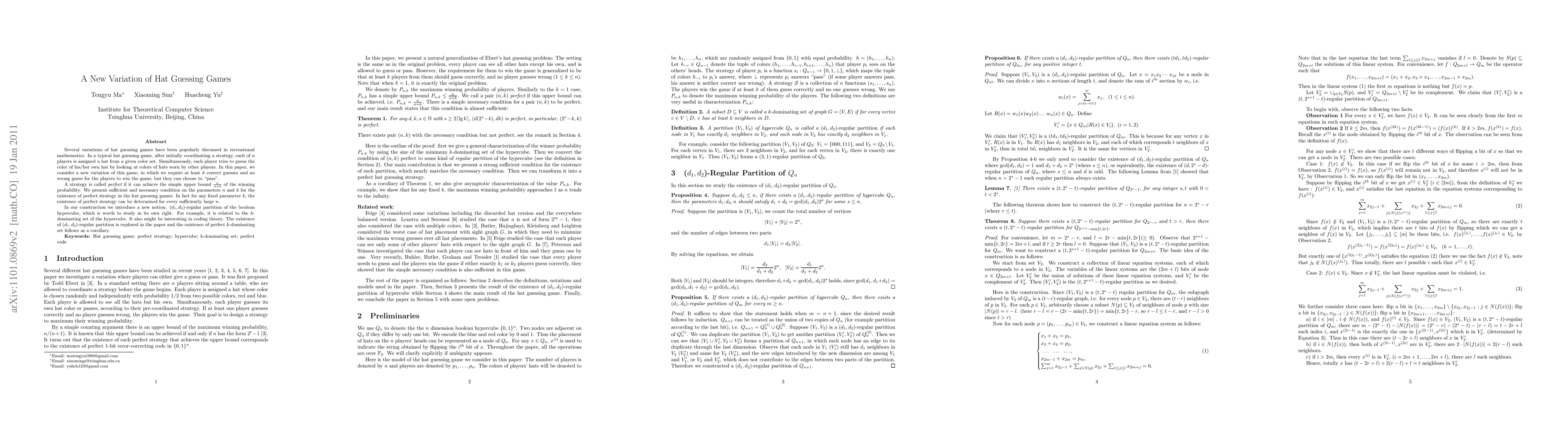 Researchers created a new variation of hat guessing games with stricter rules, requiring at least k correct guesses to win, and found that perfect strategies exist for sufficiently large n, depending on the parameters k and n.