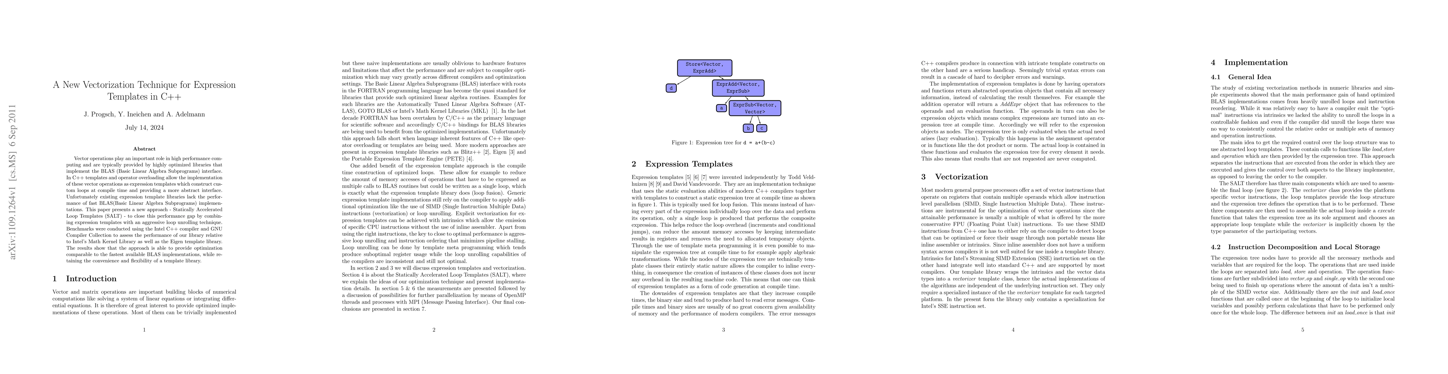 This paper introduces Statically Accelerated Loop Templates (SALT) to enhance the performance of expression templates in C++ by integrating aggressive loop unrolling. Benchmarks demonstrate SALT's performance is comparable to the fastest BLAS implementations, bridging the gap between template libraries and optimized libraries.