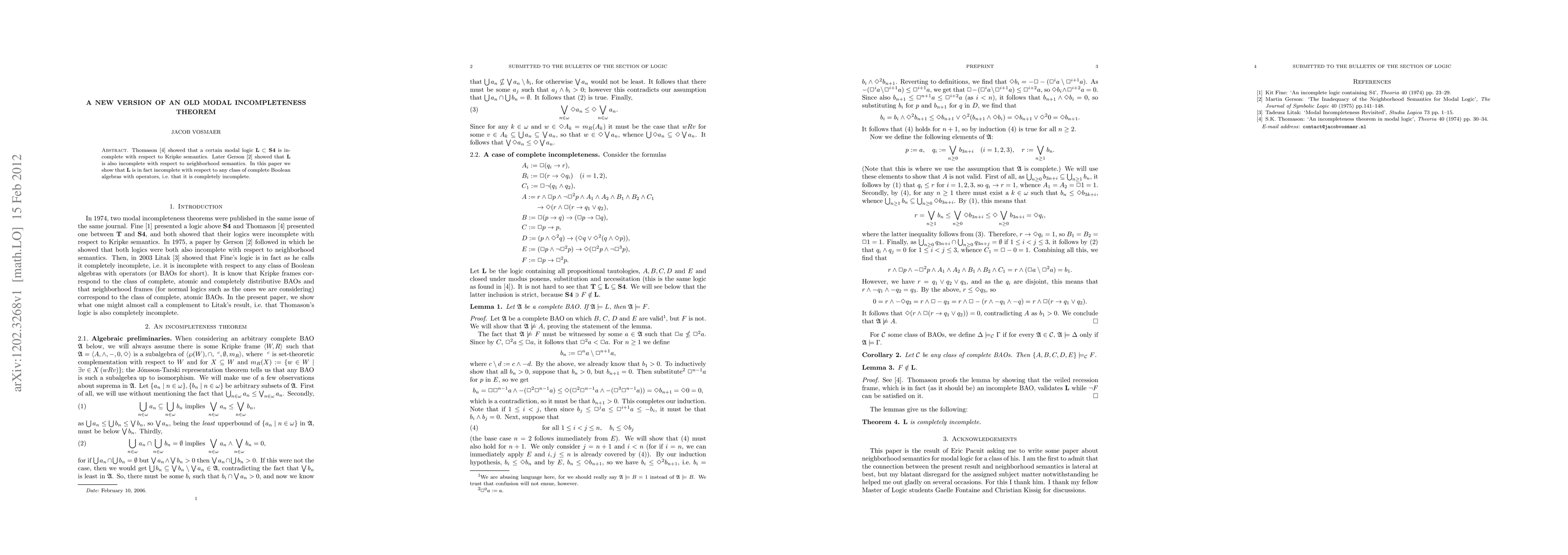 Researchers prove a modal logic is completely incomplete with respect to any class of complete Boolean algebras with operators, confirming previous findings on Kripke and neighborhood semantics.