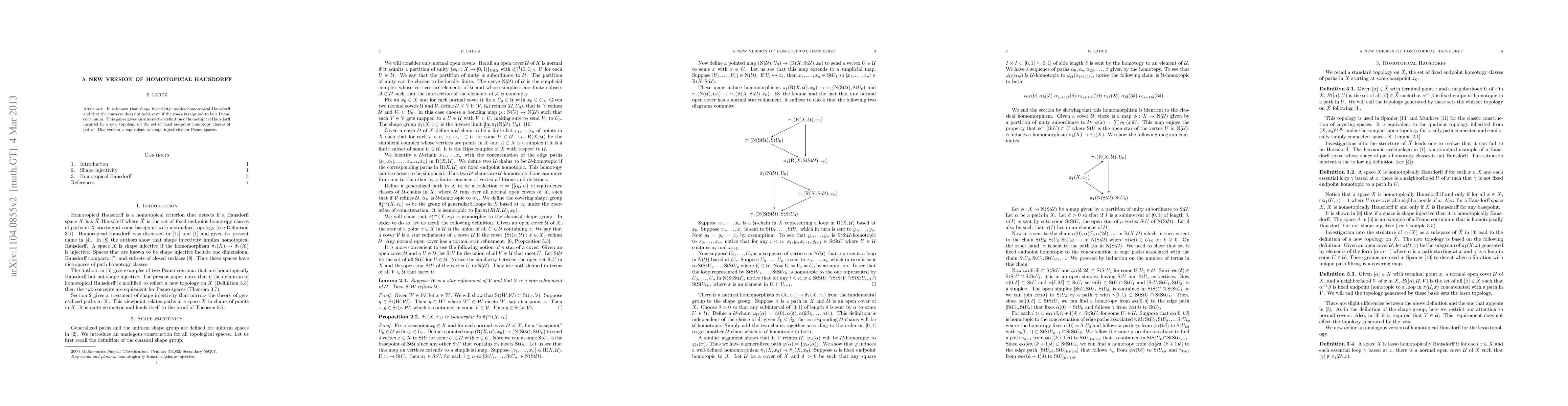 It is known that shape injectivity implies homotopical Hausdorff and that the converse does not hold, even if the space is required to be a Peano continuum. This paper gives an alternative definition of homotopical Hausdorff inspired by a new topology on the set of fixed endpoint homotopy classes of paths. This version is equivalent to shape injectivity for Peano spaces.