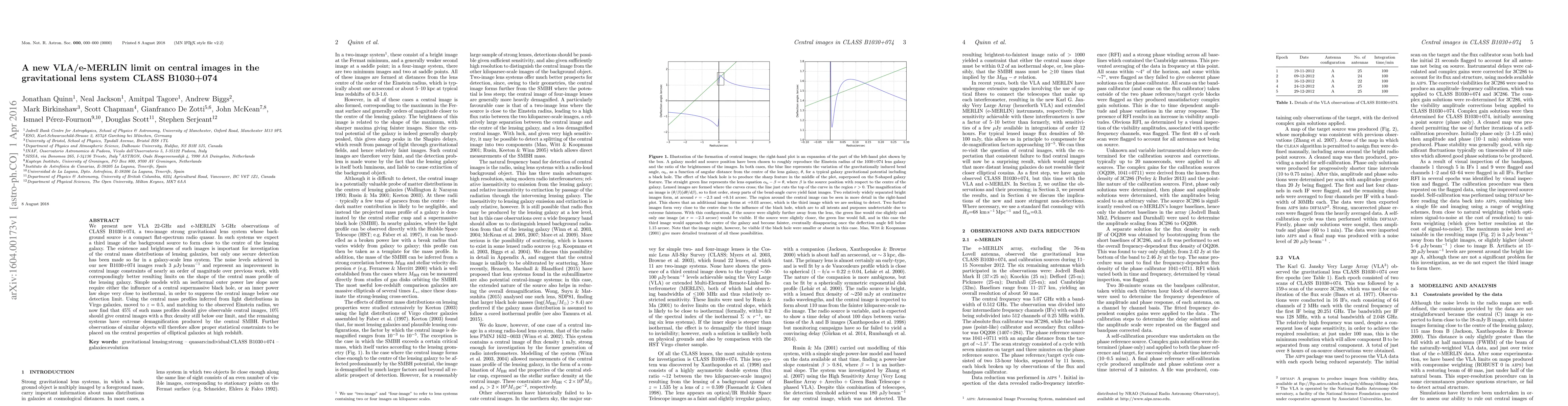 We present new VLA 22-GHz and e-MERLIN 5-GHz observations of CLASS B1030+074, a two-image strong gravitational lens system whose background source is a compact flat-spectrum radio quasar. In such systems we expect a third image of the background source to form close to the centre of the lensing galaxy. The existence and brightness of such images is important for investigation of the central mass distributions of lensing galaxies, but only one secure detection has been made so far in a galaxy-scale lens system. The noise levels achieved in our new B1030+074 images reach 3 microJy/beam and represent an improvement in central image constraints of nearly an order of magnitude over previous work, with correspondingly better resulting limits on the shape of the central mass profile of the lensing galaxy. Simple models with an isothermal outer power law slope now require either the influence of a central supermassive black hole, or an inner power law slope very close to isothermal, in order to suppress the central image below our detection limit. Using the central mass profiles inferred from light distributions in Virgo galaxies, moved to z=0.5, and matching to the observed Einstein radius, we now find that 45% of such mass profiles should give observable central images, 10% should give central images with a flux density still below our limit, and the remaining systems have extreme demagnification produced by the central SMBH. Further observations of similar objects will therefore allow proper statistical constraints to be placed on the central properties of elliptical galaxies at high redshift.