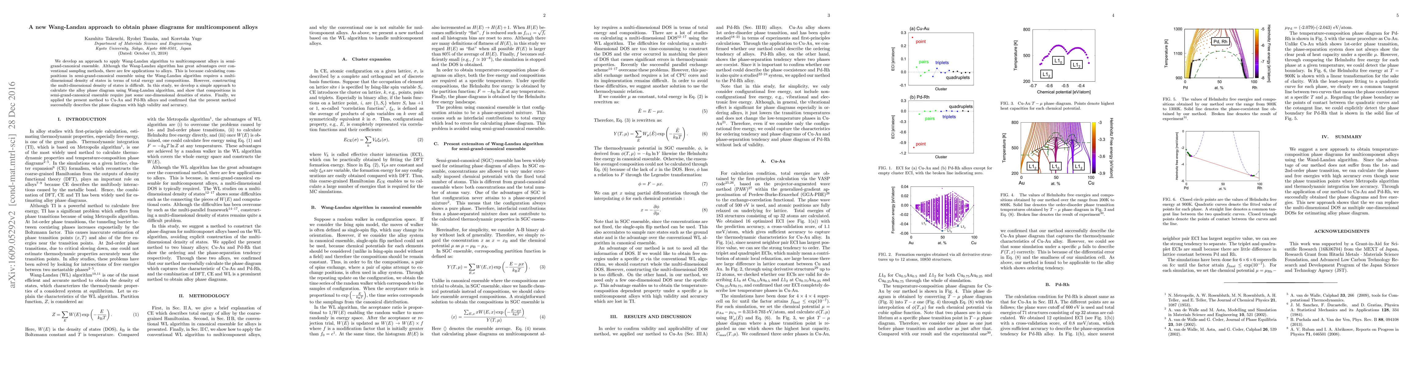 This paper introduces a novel Wang-Landau approach to derive phase diagrams for multicomponent alloys, simplifying the complex multi-dimensional density of states required in semi-grand-canonical ensemble calculations. The method successfully describes the phase diagrams of Cu-Au and Pd-Rh alloys with high accuracy.