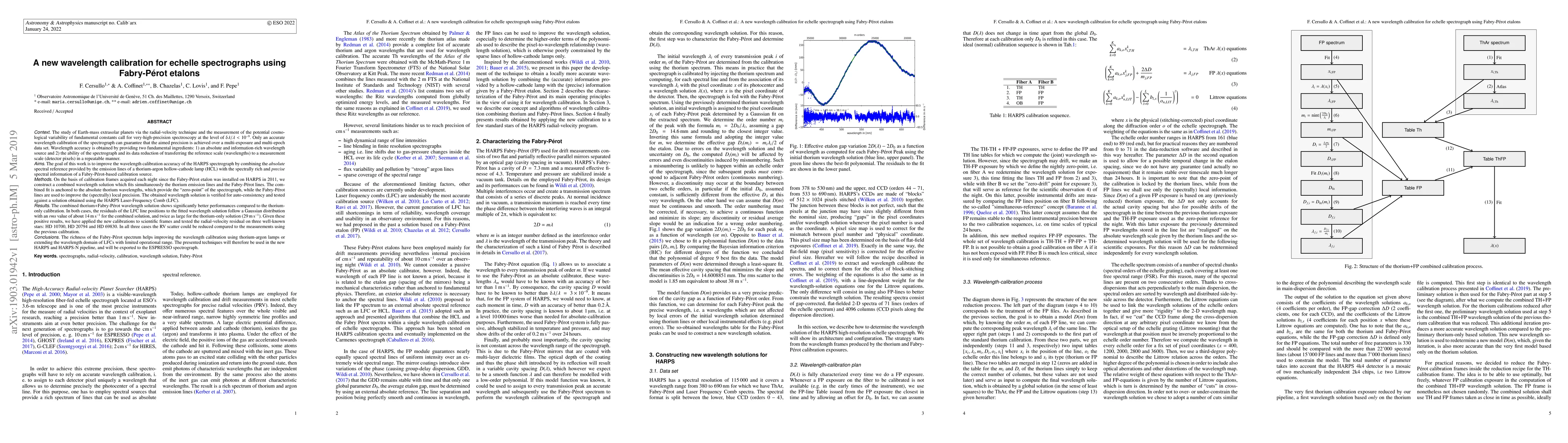 This paper presents a new wavelength calibration method for the HARPS spectrograph, combining thorium-argon emission lines with Fabry-Pérot etalons to achieve ultra-high precision. The new method significantly improves calibration accuracy compared to the previous thorium-only approach, enhancing the spectrograph's performance for high-precision spectroscopy.