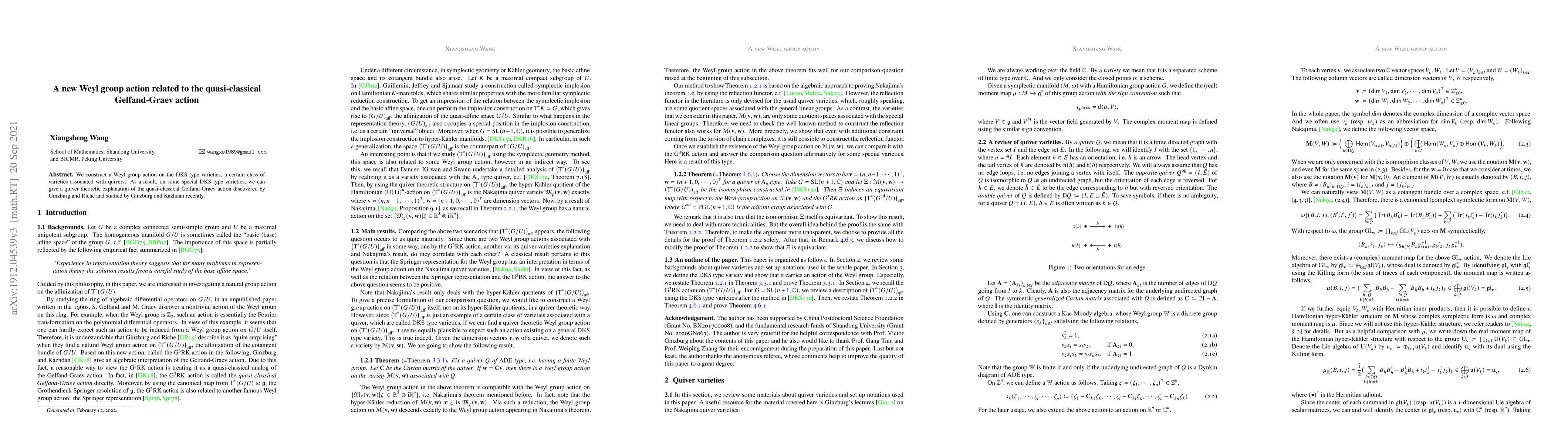 We construct a Weyl group action on the DKS type varieties, a certain class of varieties associated with quivers. As a result, on some special DKS type varieties, we can give a quiver theoretic explanation of the quasi-classical Gelfand-Graev action discovered by Ginzburg and Riche and studied by Ginzburg and Kazhdan recently.