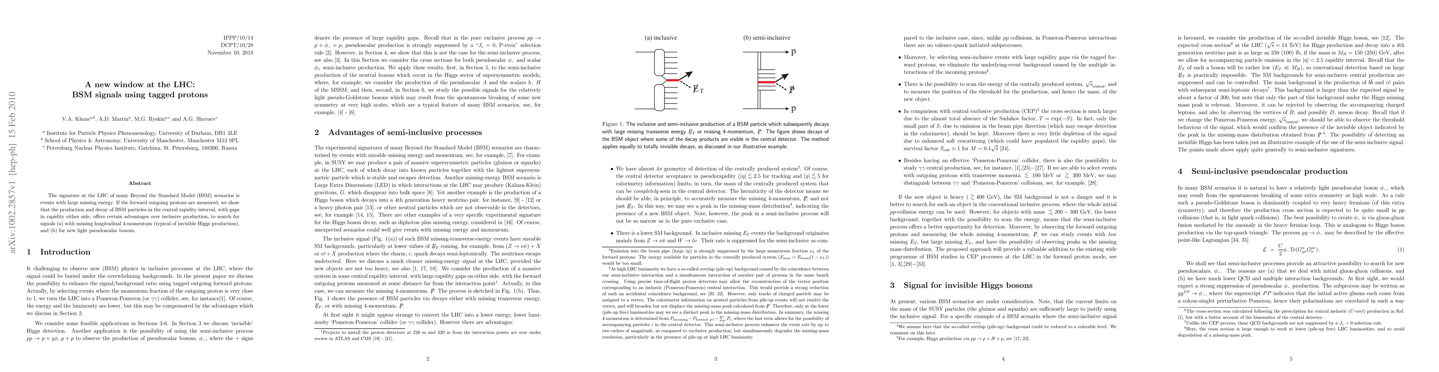 Researchers propose a new method to detect Beyond Standard Model particles at the LHC by tagging protons and focusing on central rapidity intervals with gaps in energy, which can better distinguish between invisible Higgs production and new light bosons.